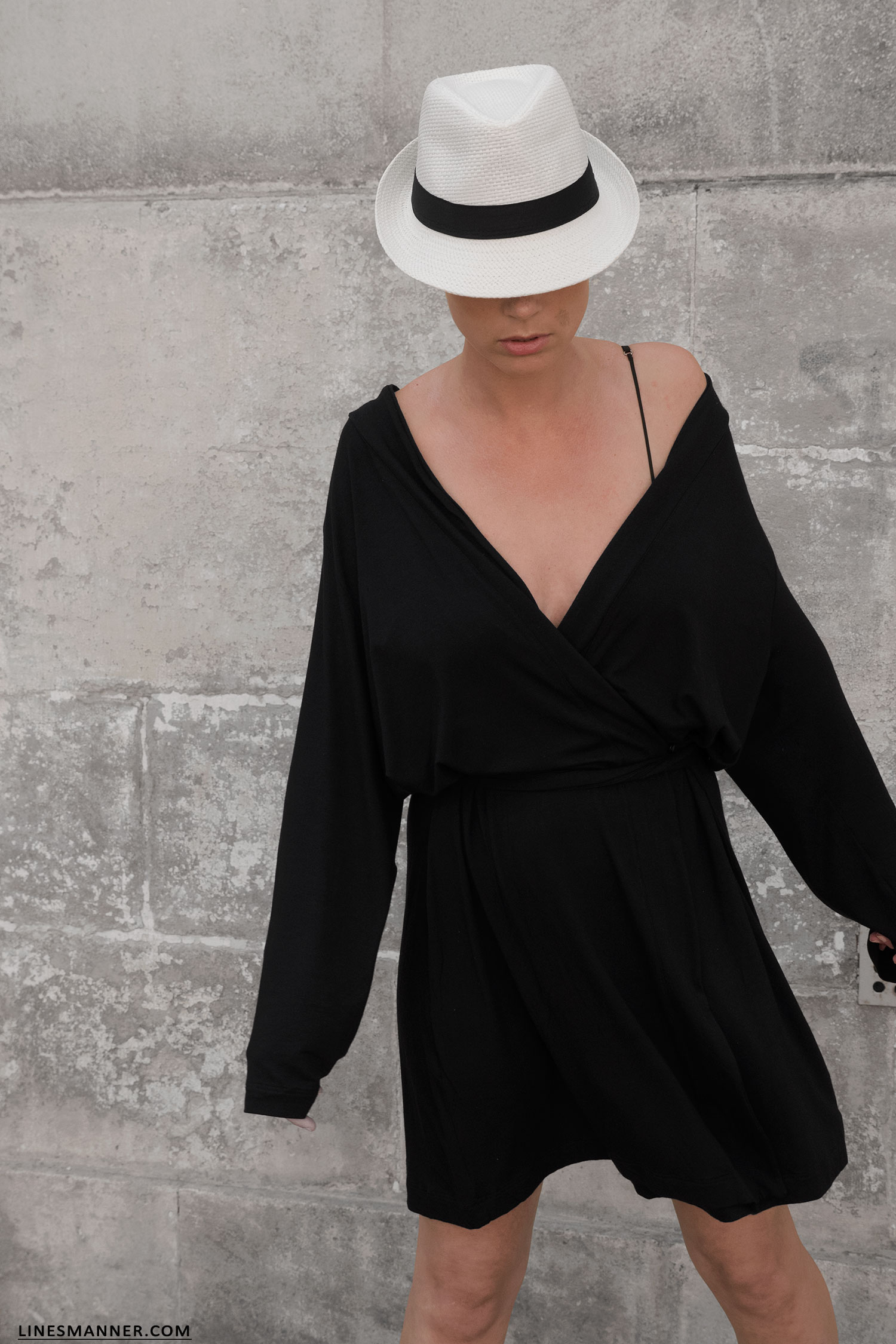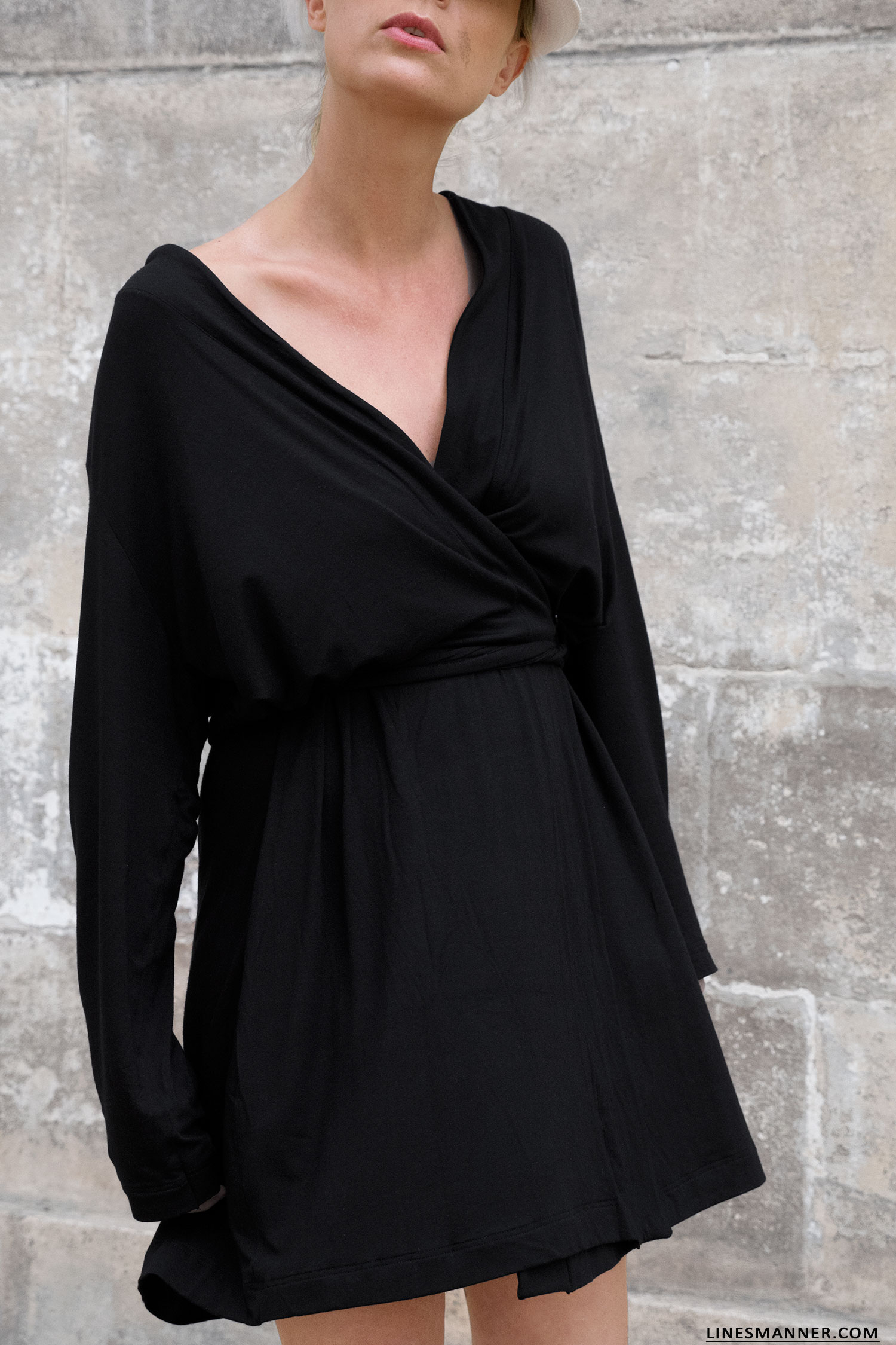 This black wrapped dress is ideal for summer days as well as for more relaxed moments at home. The softest little black dress Lines/Manner has ever worn.