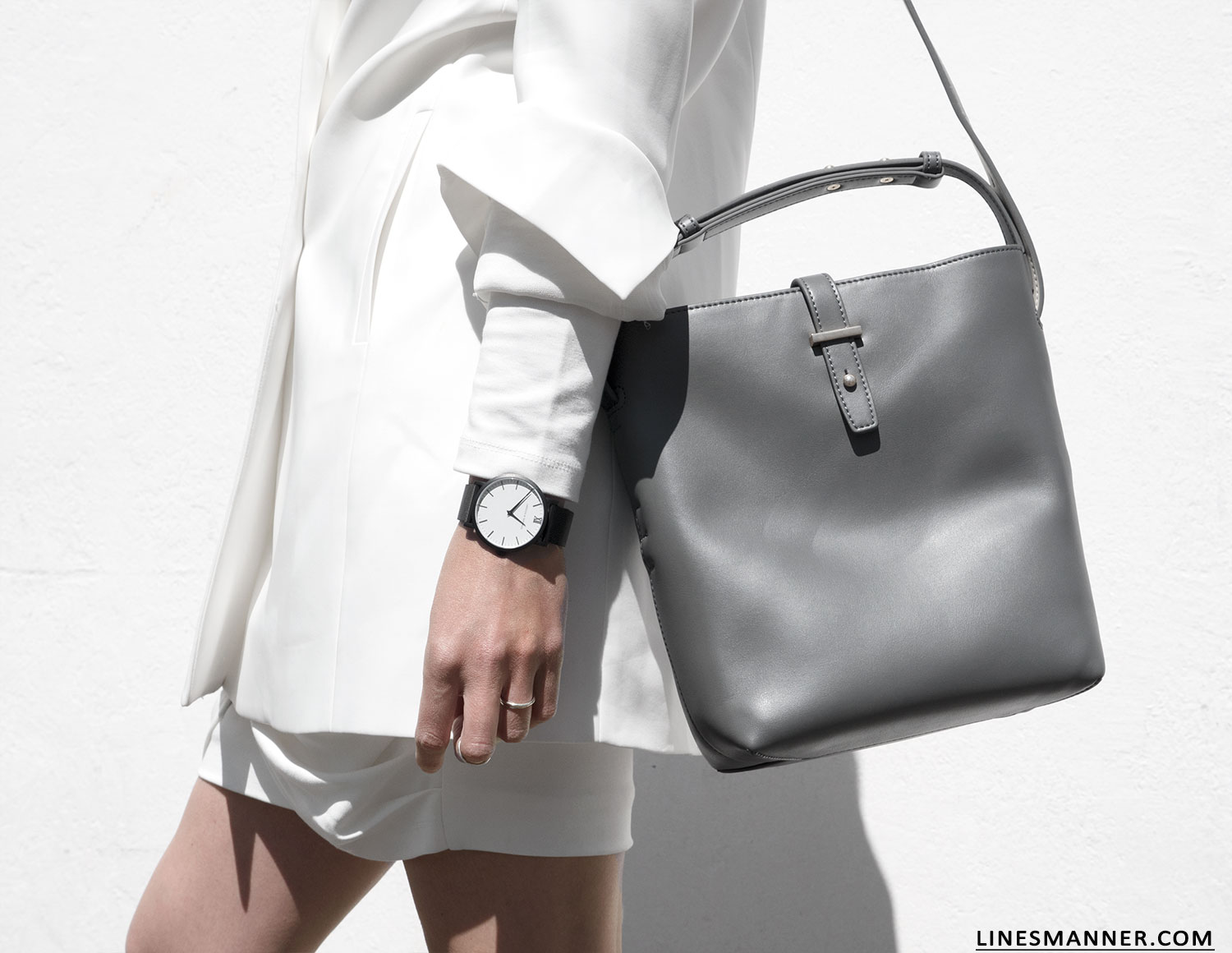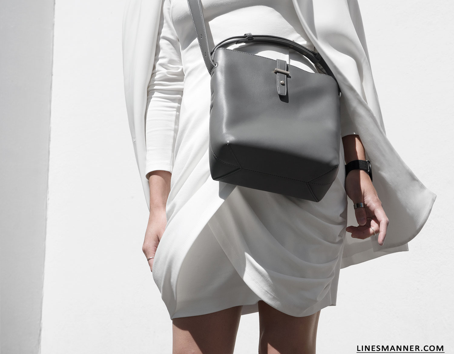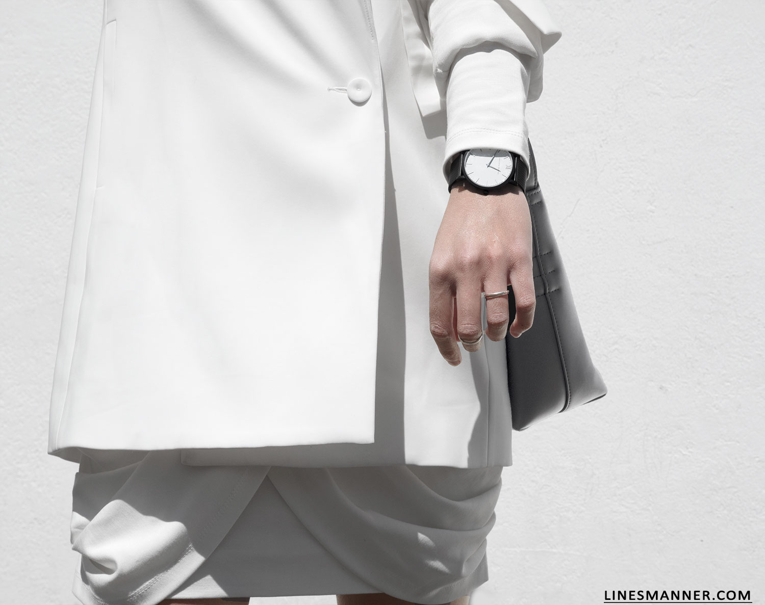 Immaculate white, clean tailoring, contemporary pieces, confronted textures.