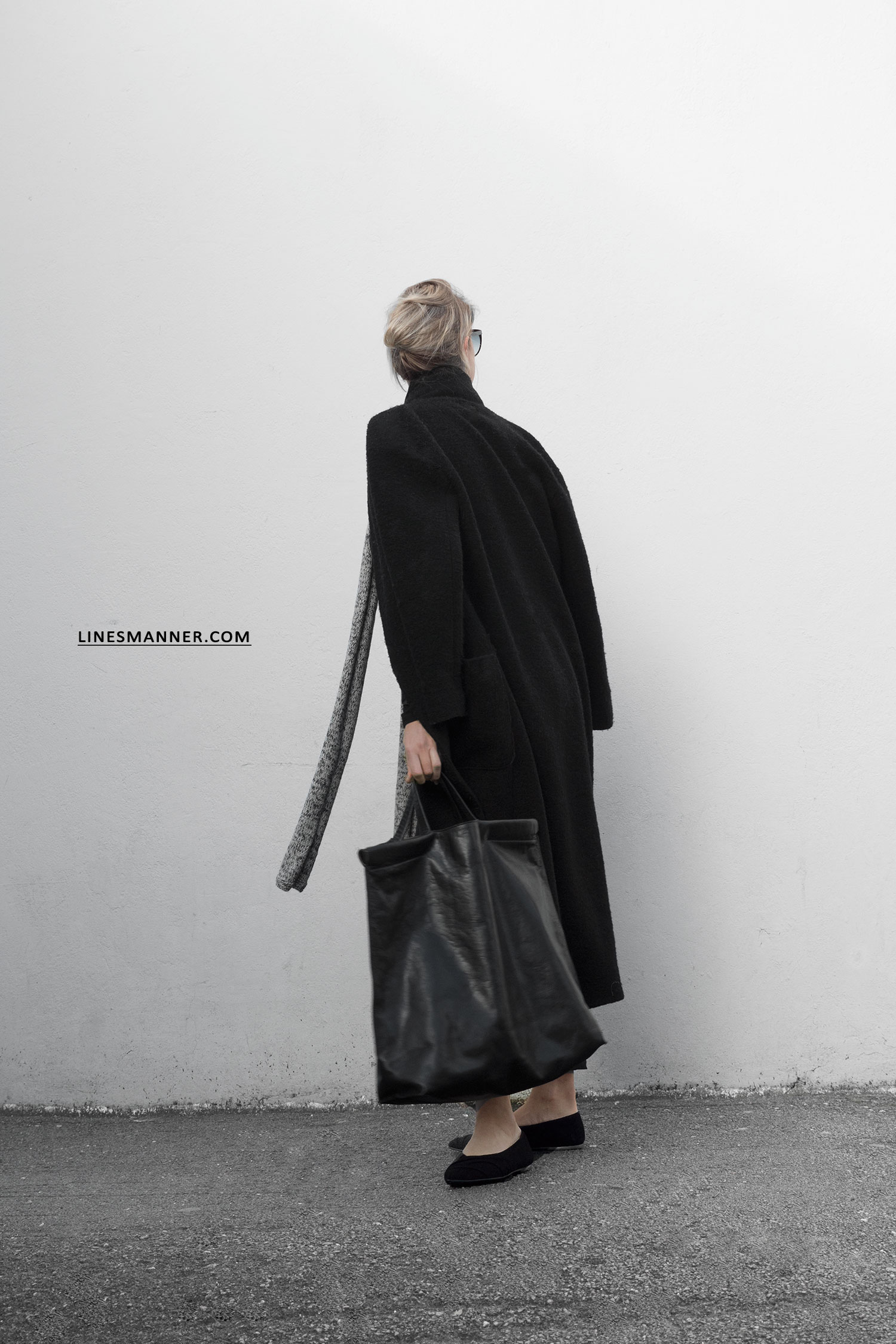 Flattered Flat Shoes – Items by Bea for Serax Shopper Bag – Eileen Fischer Knit – Arket Black Jeans