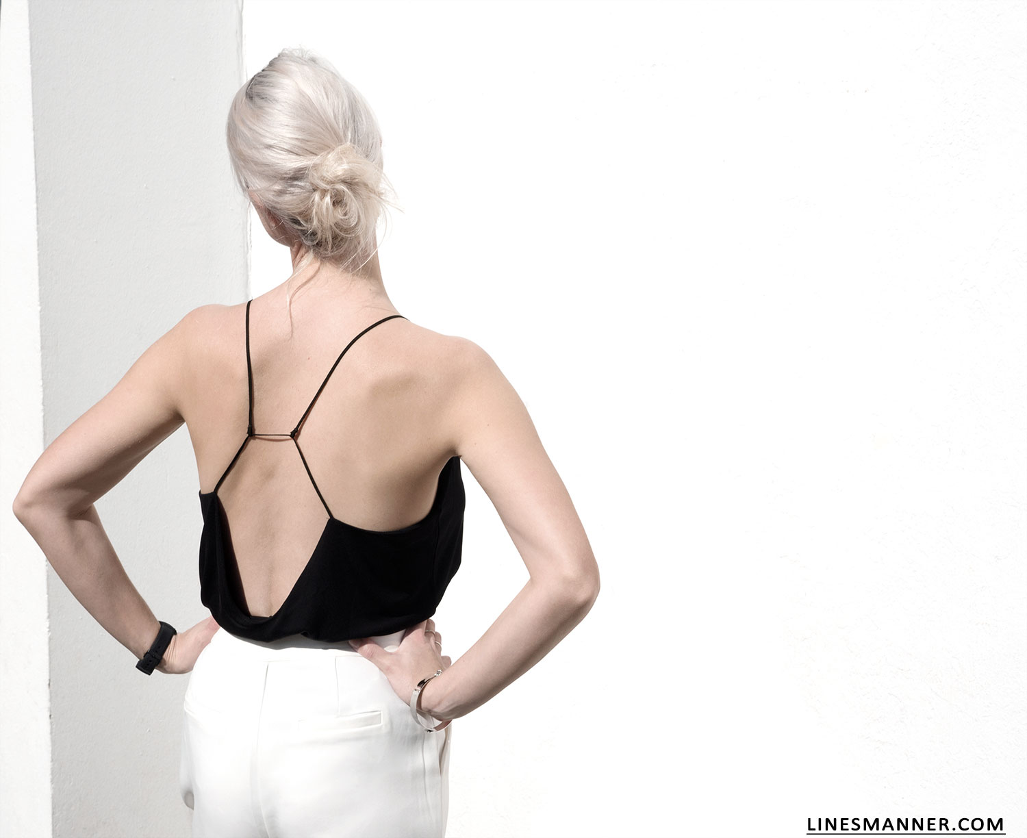 Mixing black and white never goes wrong. A monochrome identity is always a good fit, whether it be for an easy weekday wear or to establish an elegantly defined and flowing silhouette. Wink to lingerie top and open-back.