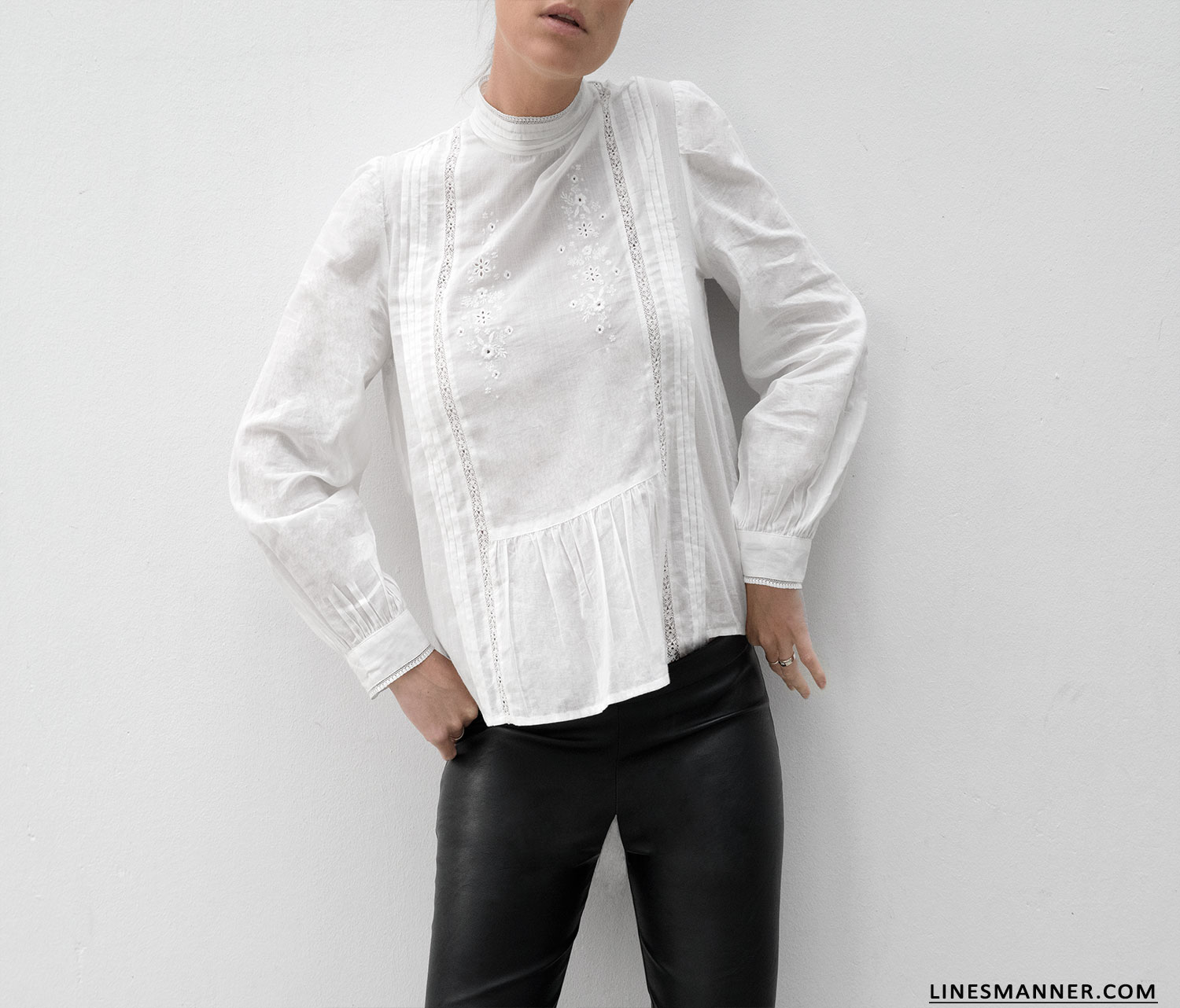 Embroidery and intricate details (basques, folds…) entirely sum up this Parisian chic blouse by Balzac Paris.