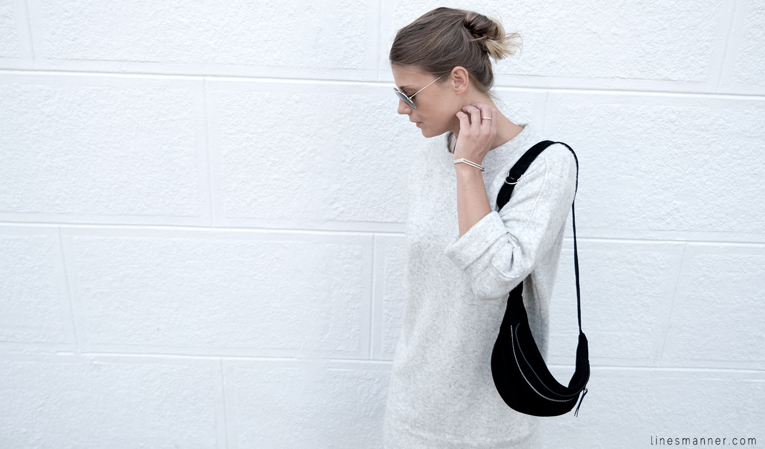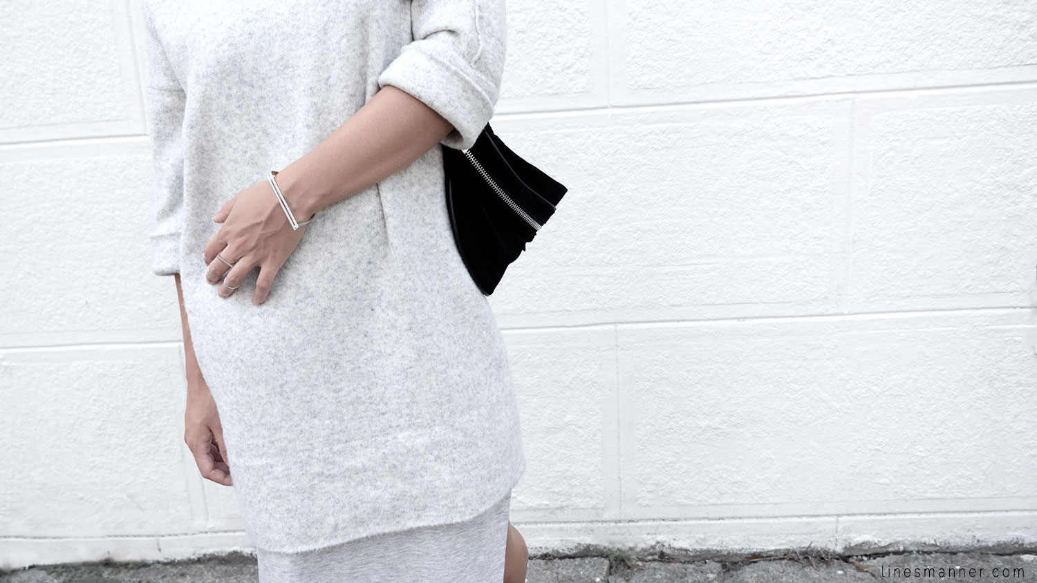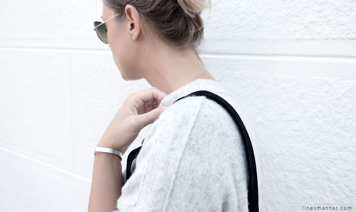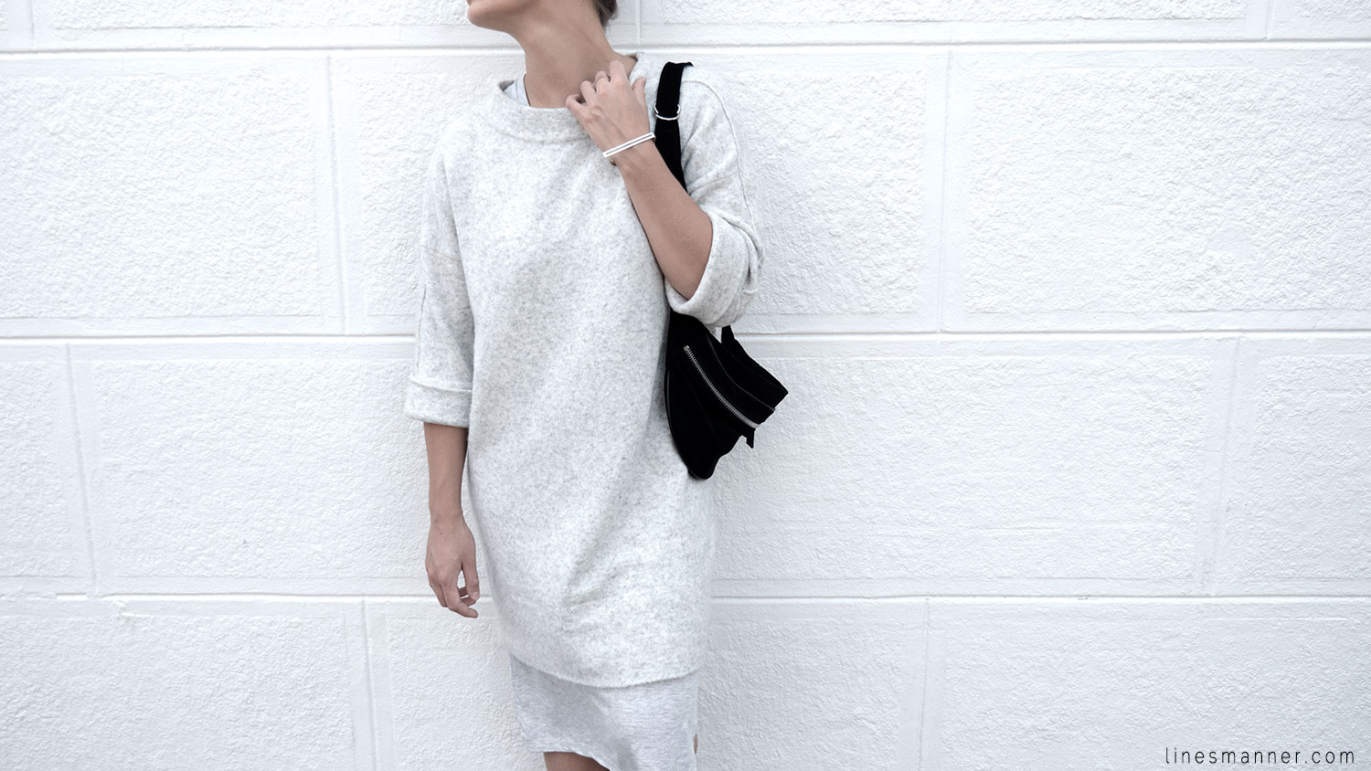 Lines/Manner a pour associée de la semaine, Lily, fondatrice du blog The Demeler, qui opte également pour le style monochrome gris et s’y imprègne merveilleusement bien en s’orientant particulièrement vers un style Tomboy. Elle a eu pour idée d’inclure coupes structurées et définies pendant que Lines/Manner tends vers une approche délicate et davantage aérienne.