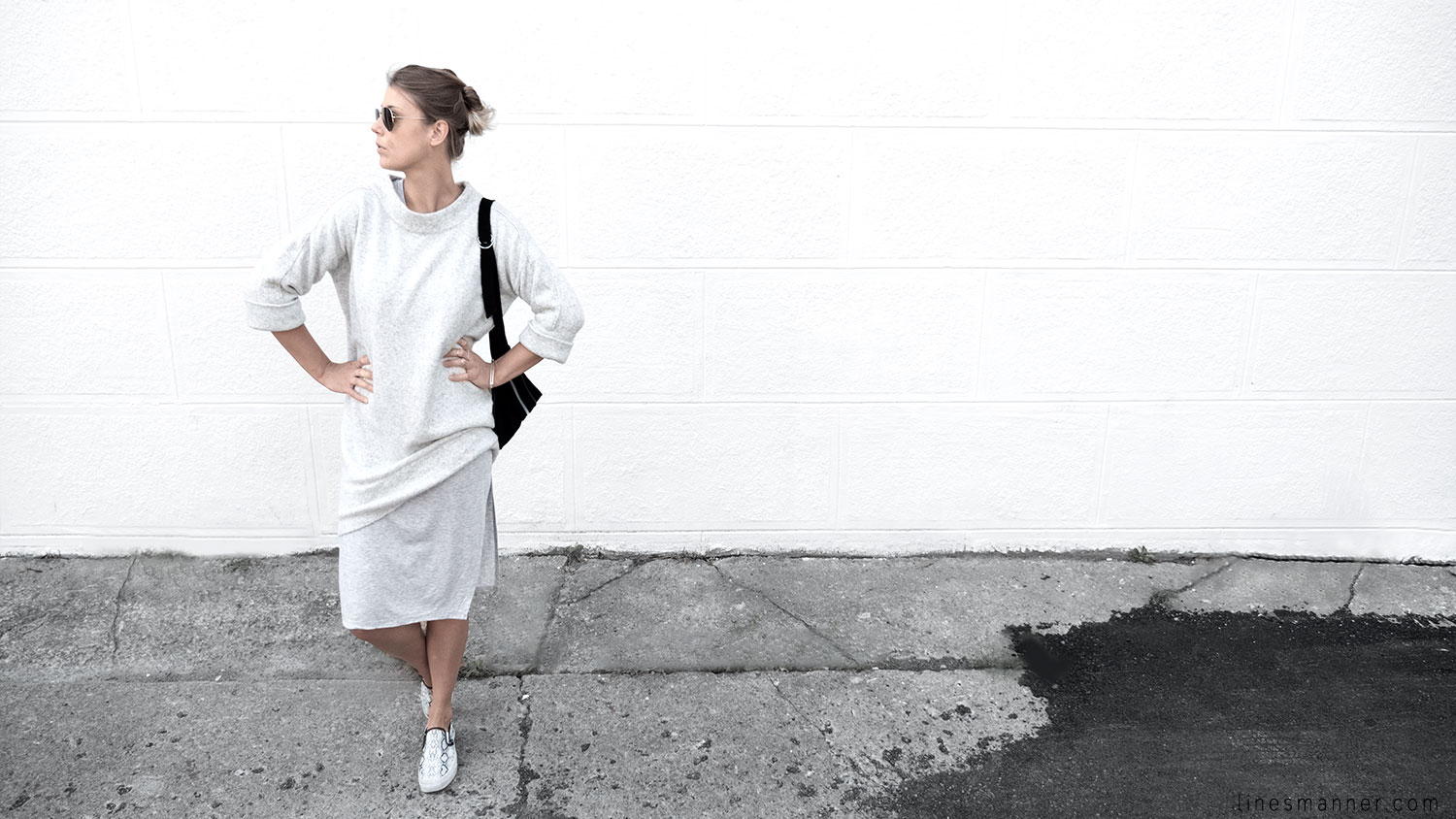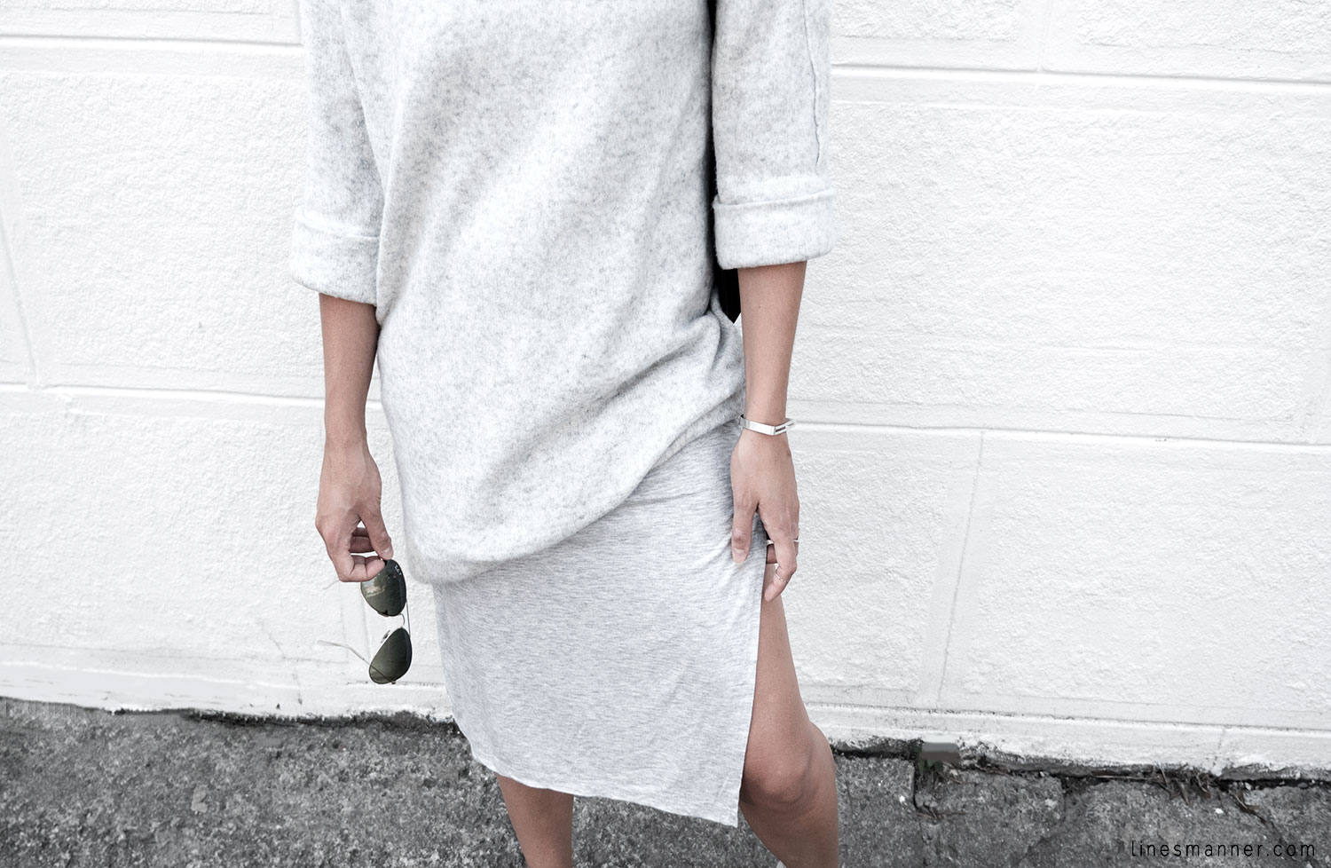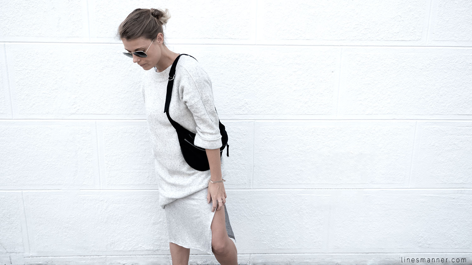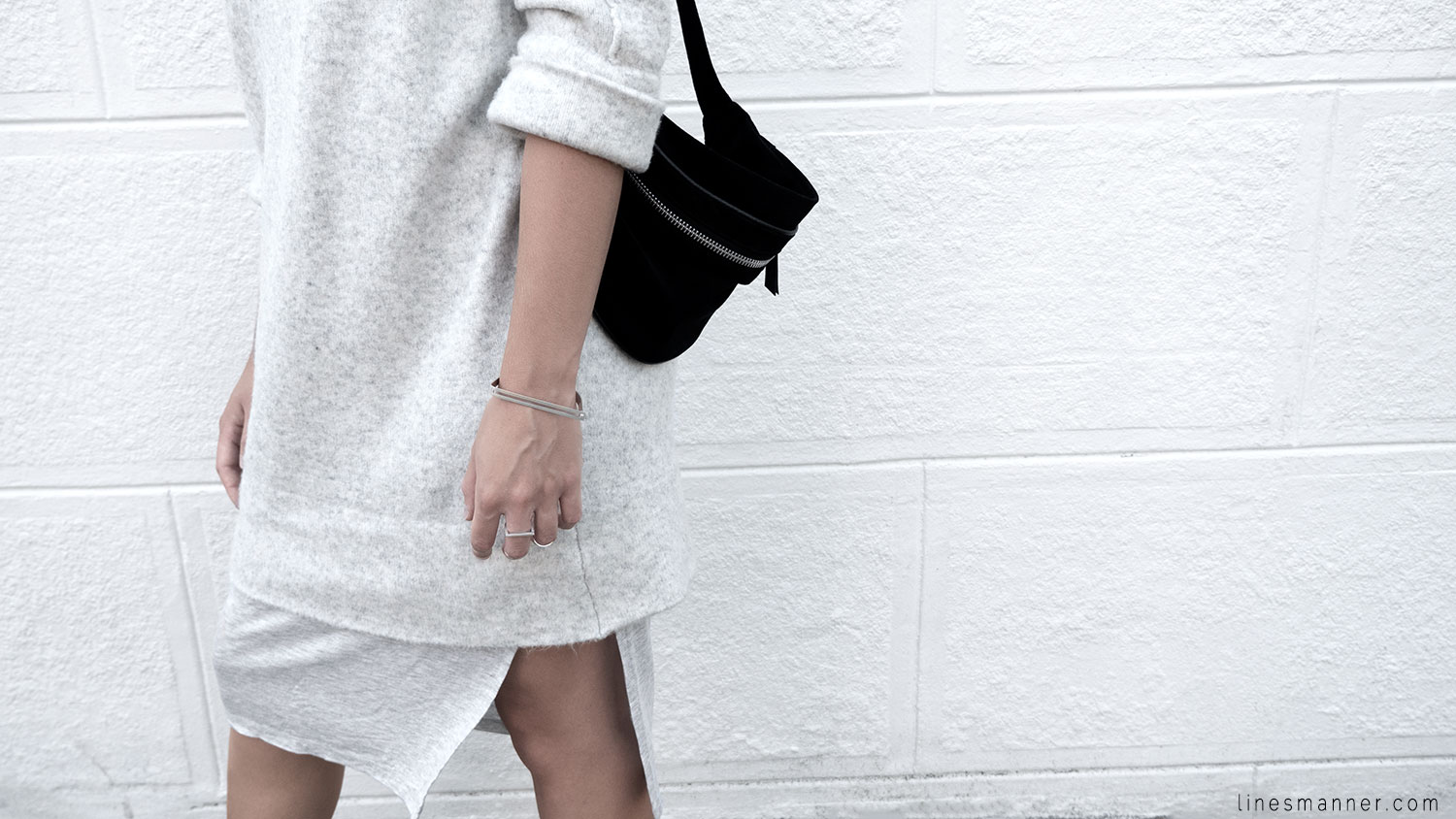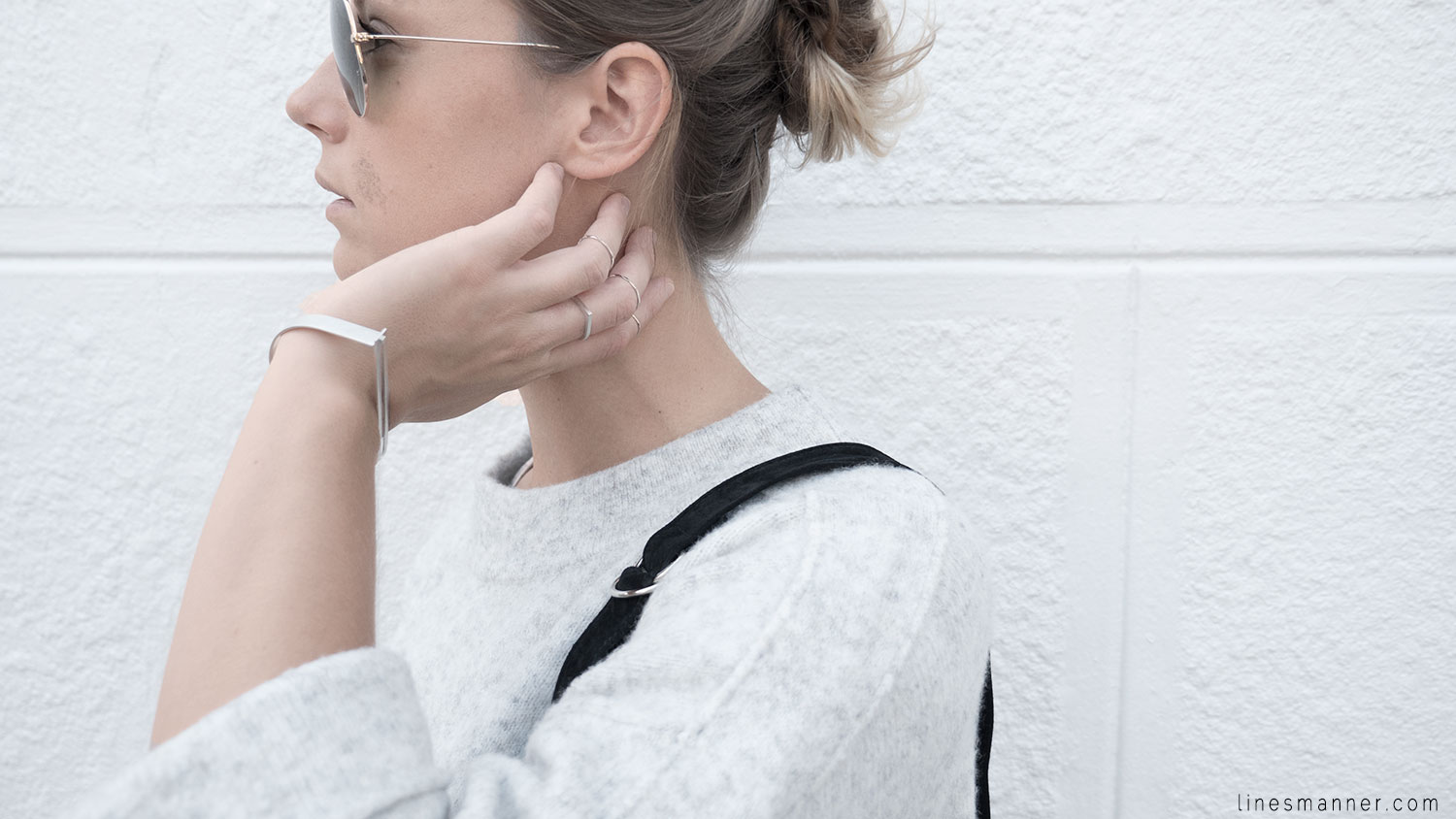 Lines/Manner a pour associée de la semaine, Lily, fondatrice du blog The Demeler, qui opte également pour le style monochrome gris et s’y imprègne merveilleusement bien en s’orientant particulièrement vers un style Tomboy. Elle a eu pour idée d’inclure coupes structurées et définies pendant que Lines/Manner tends vers une approche délicate et davantage aérienne.