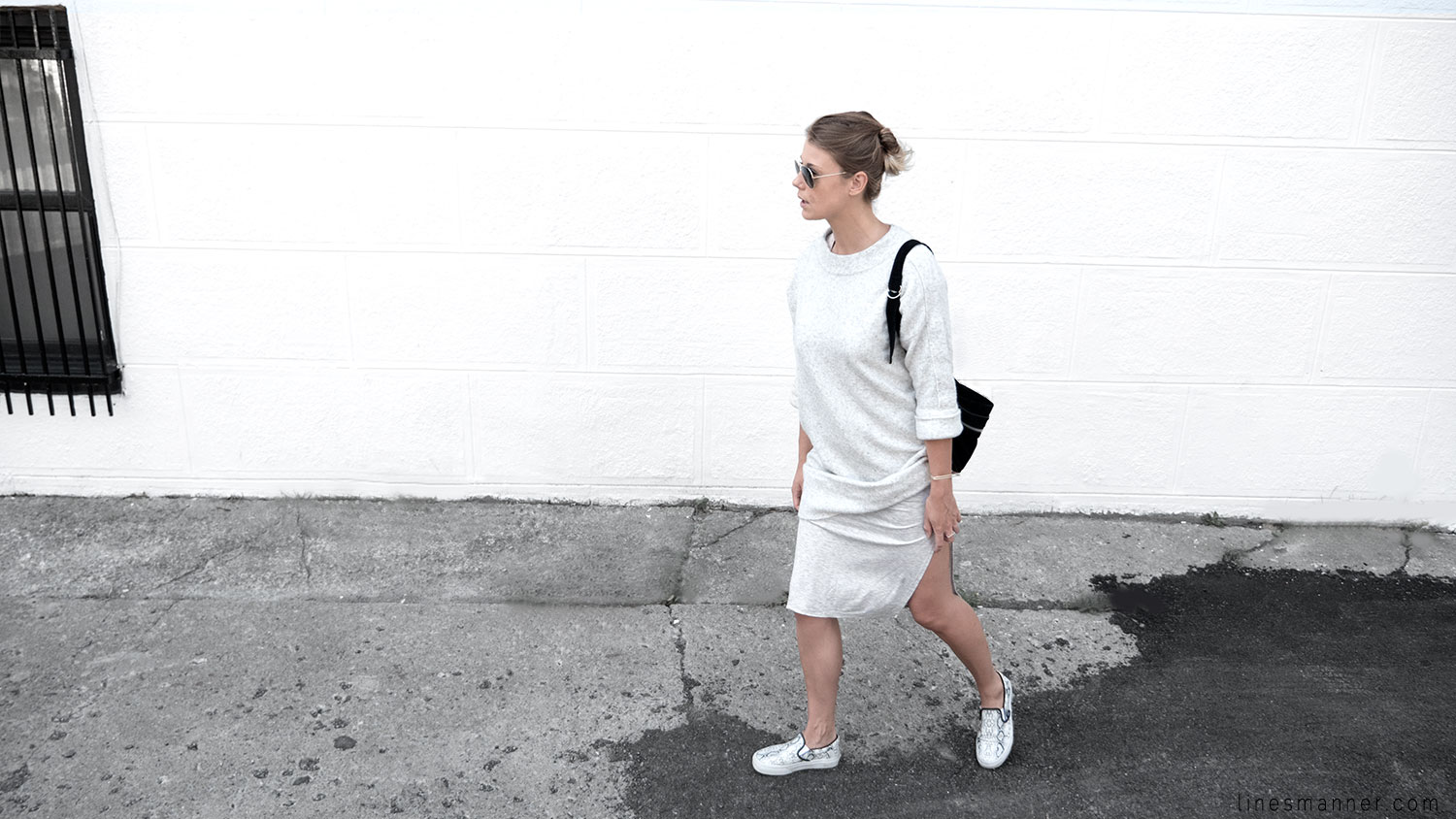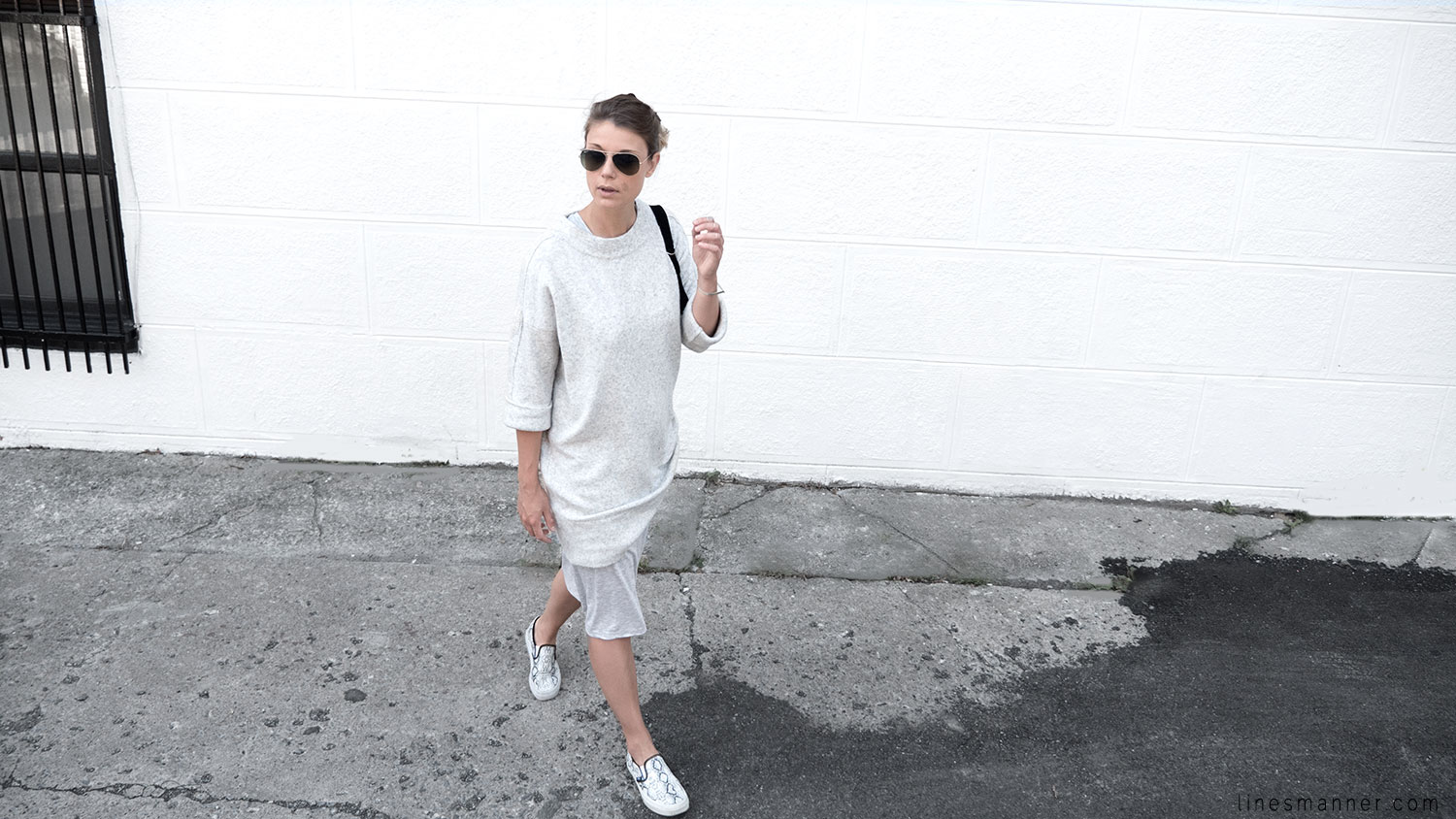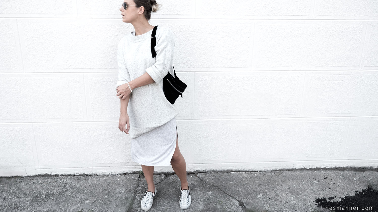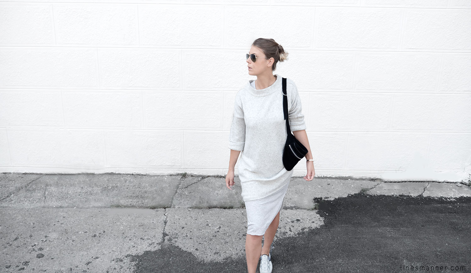 Lines/Manner a pour associée de la semaine, Lily, fondatrice du blog The Demeler, qui opte également pour le style monochrome gris et s’y imprègne merveilleusement bien en s’orientant particulièrement vers un style Tomboy. Elle a eu pour idée d’inclure coupes structurées et définies pendant que Lines/Manner tends vers une approche délicate et davantage aérienne.