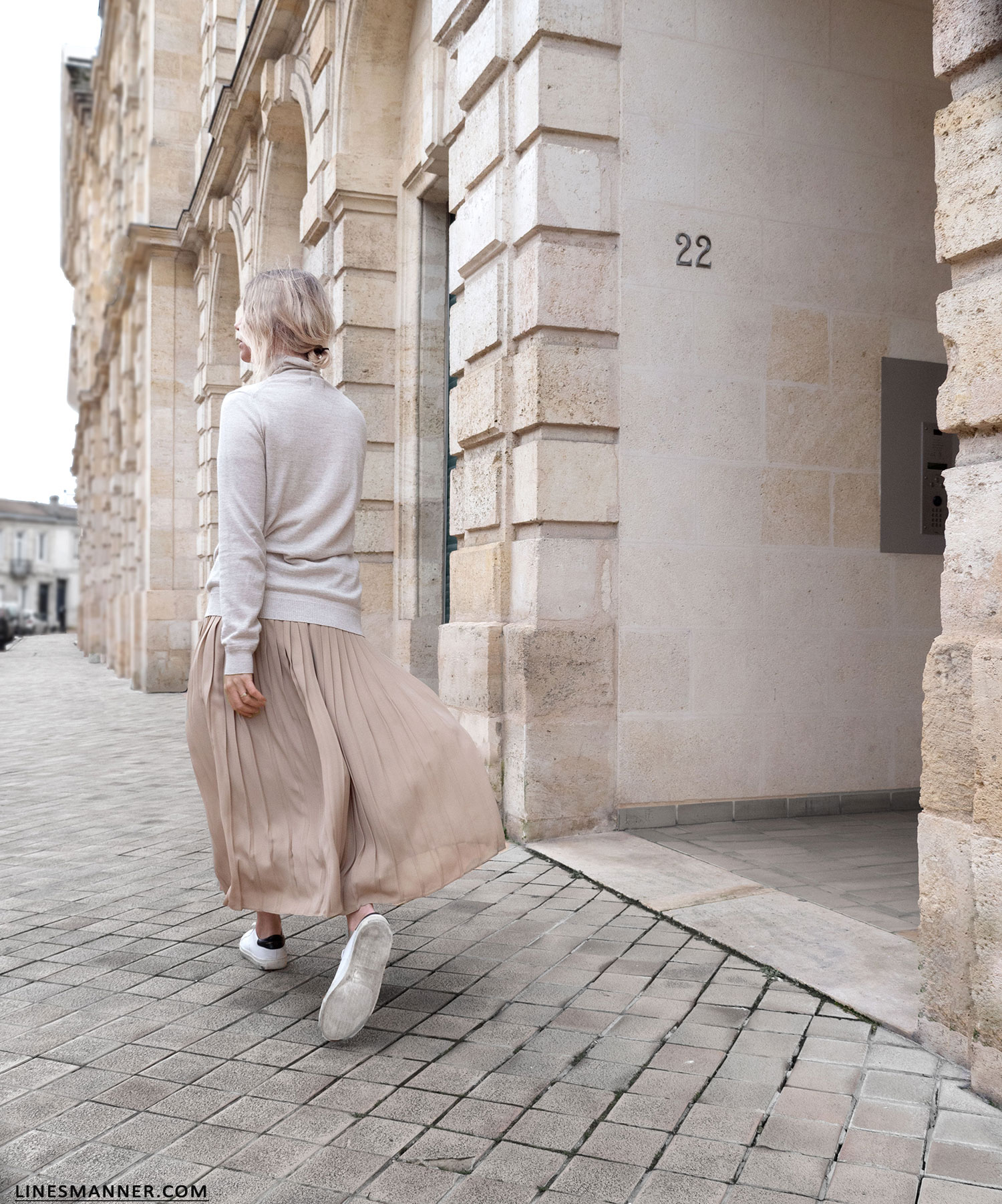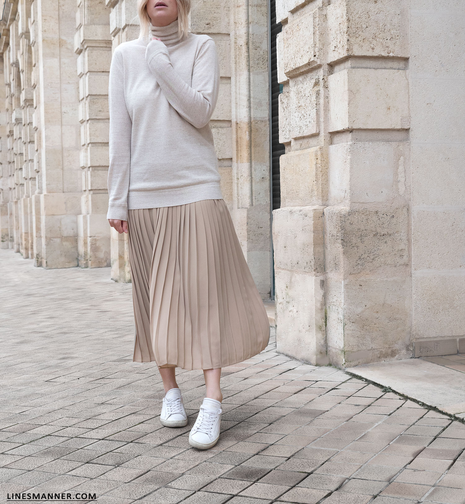 Uniqlo cachemire knit and pleated skirtArket Trench (no longer avail.)