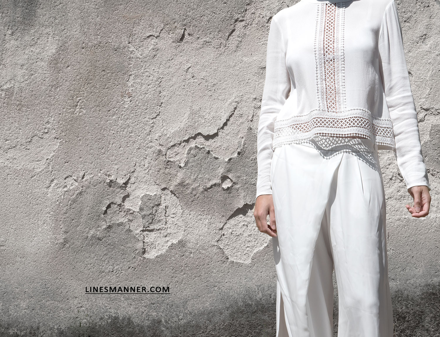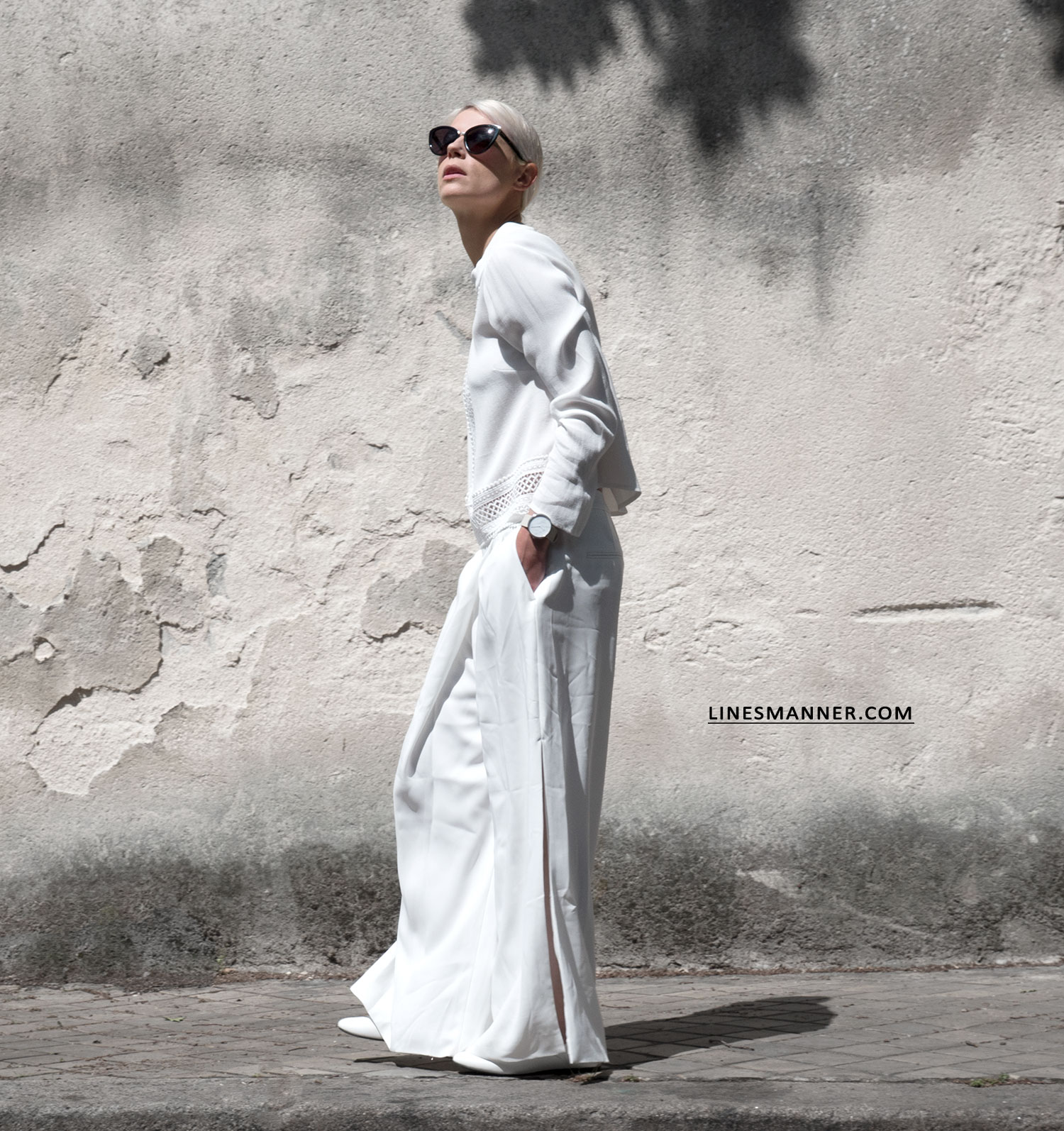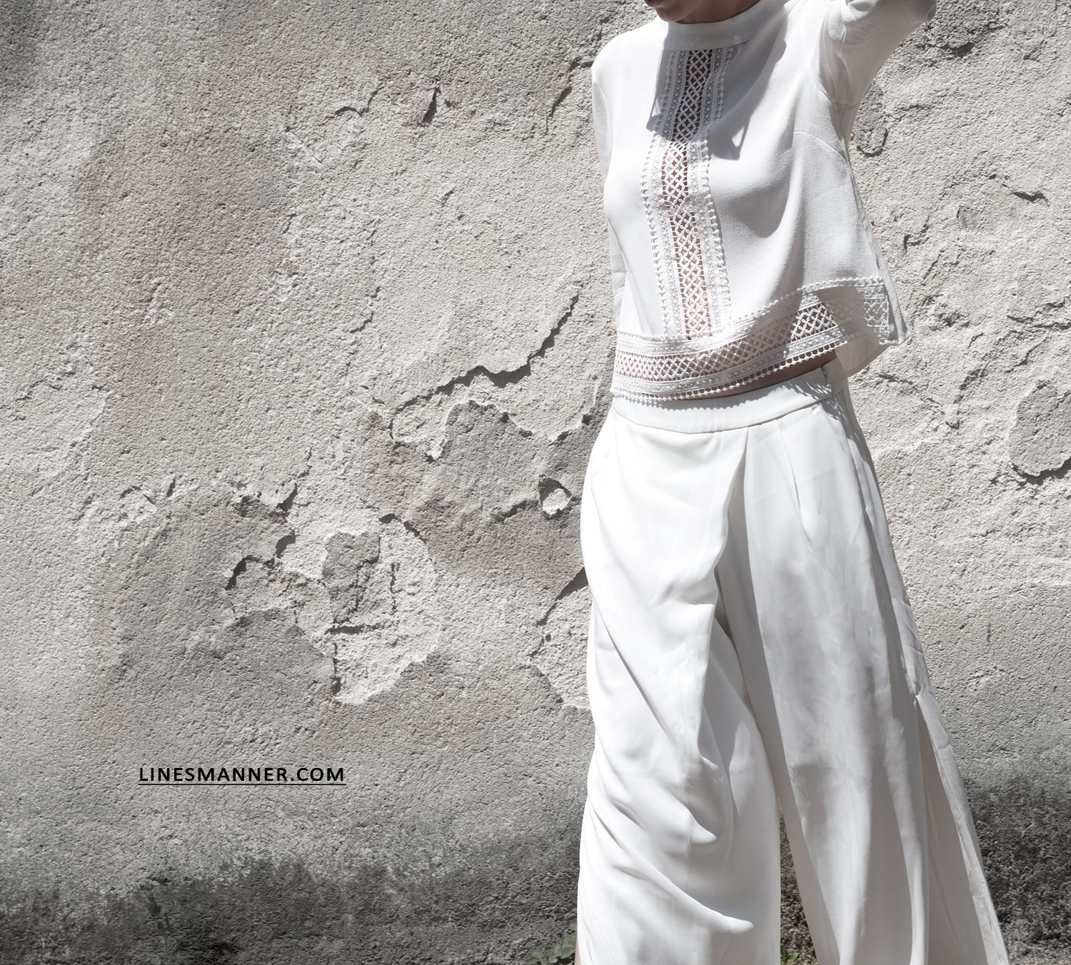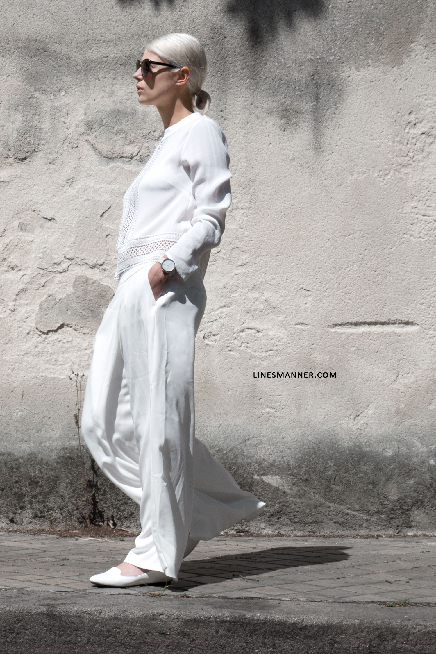 Head-to-toe white with perforated vs laced details, structure vs unstructured, liquid movement, a blend of textures, and the barest essentials.
