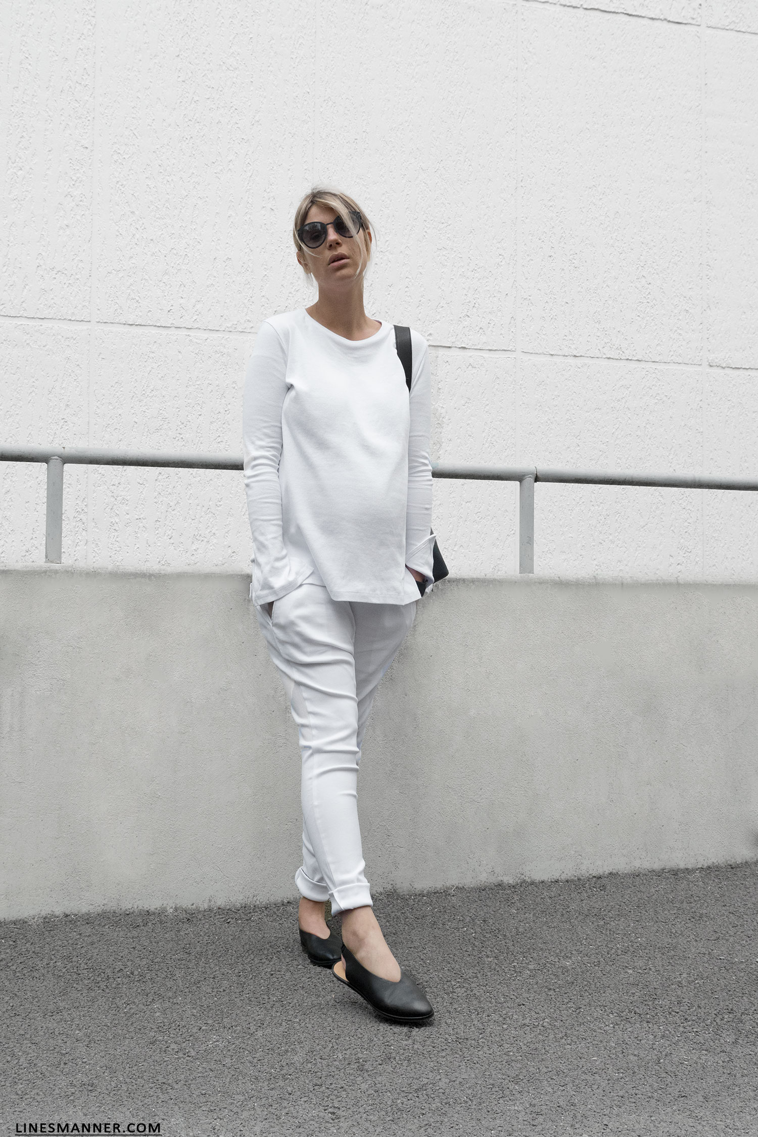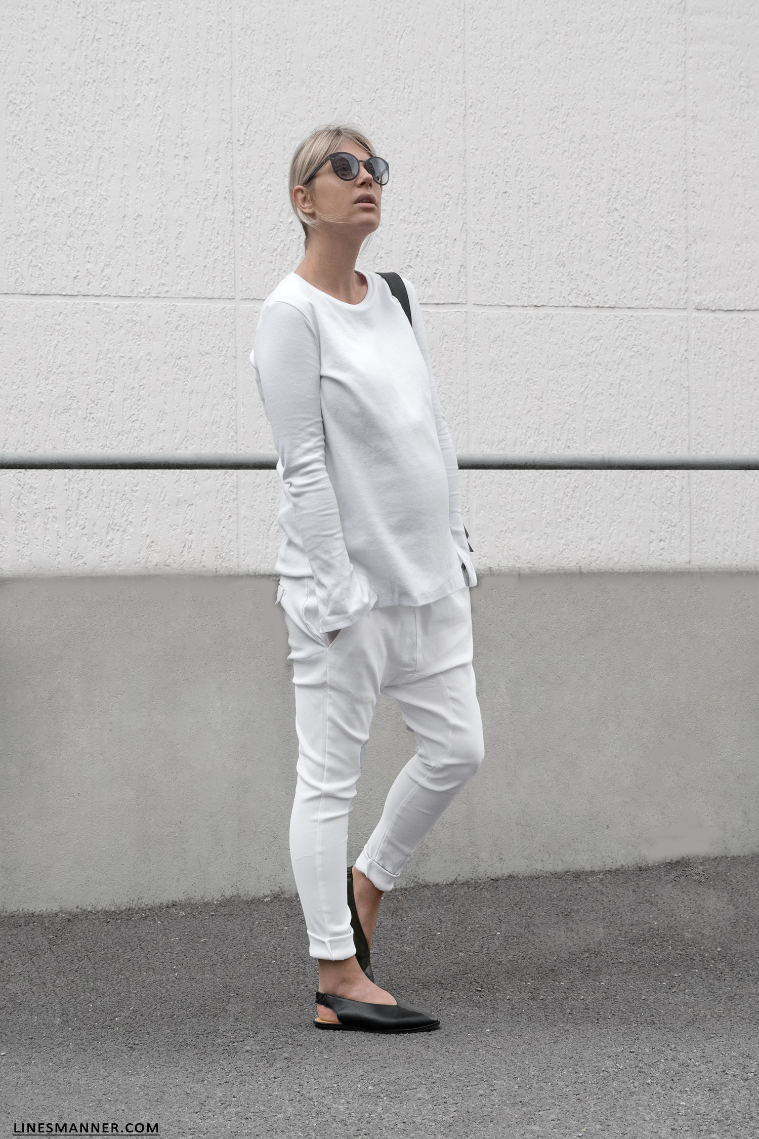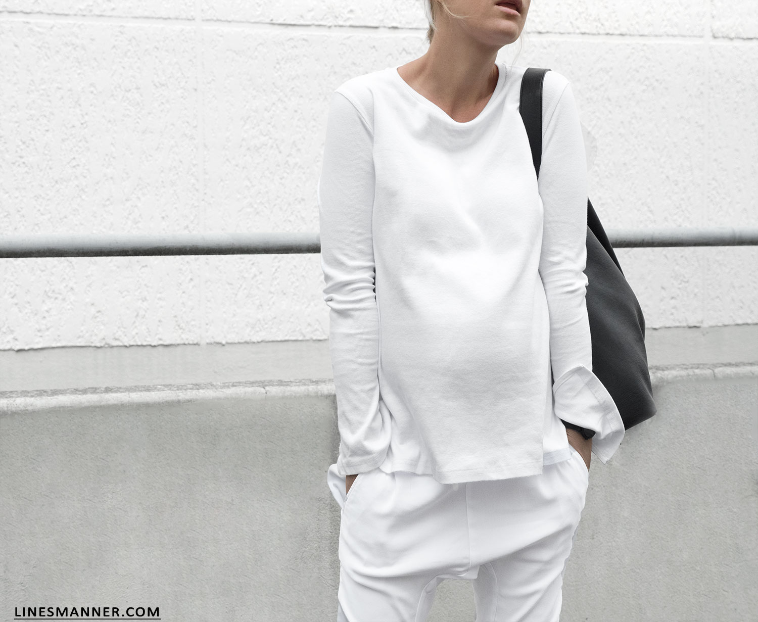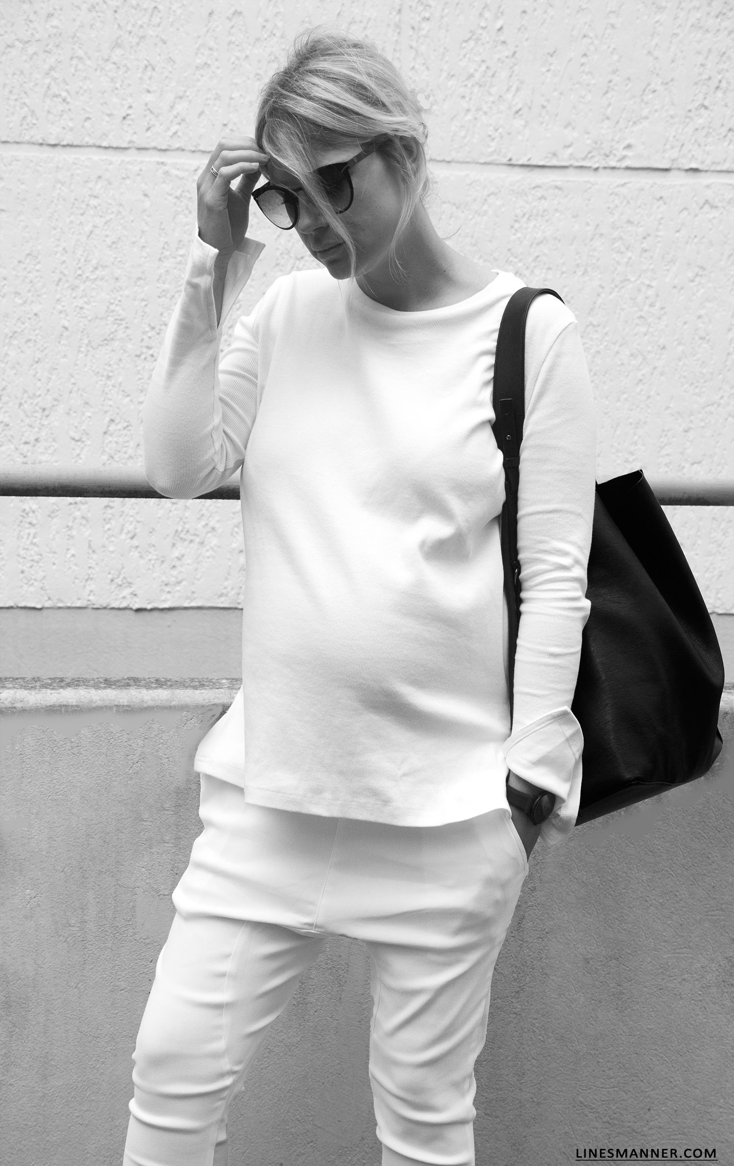 Effortless (but elevated) and slouchy whites escorted by black details.