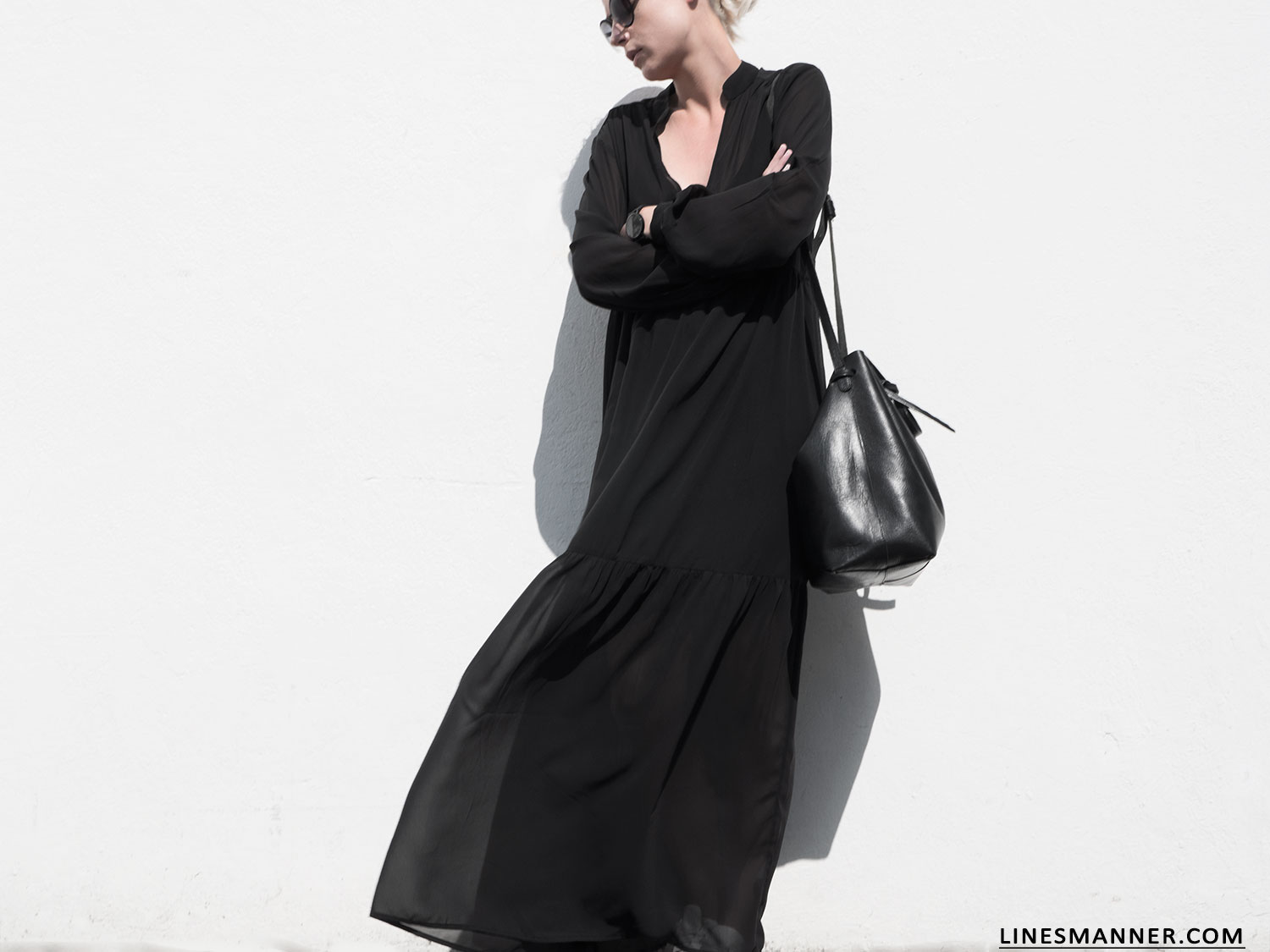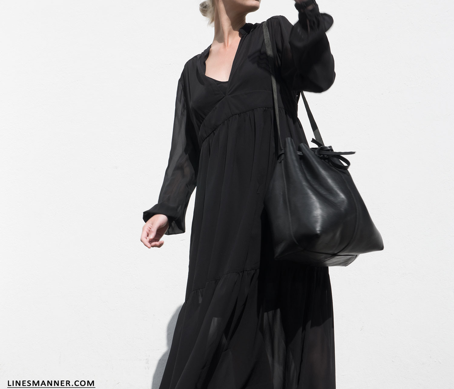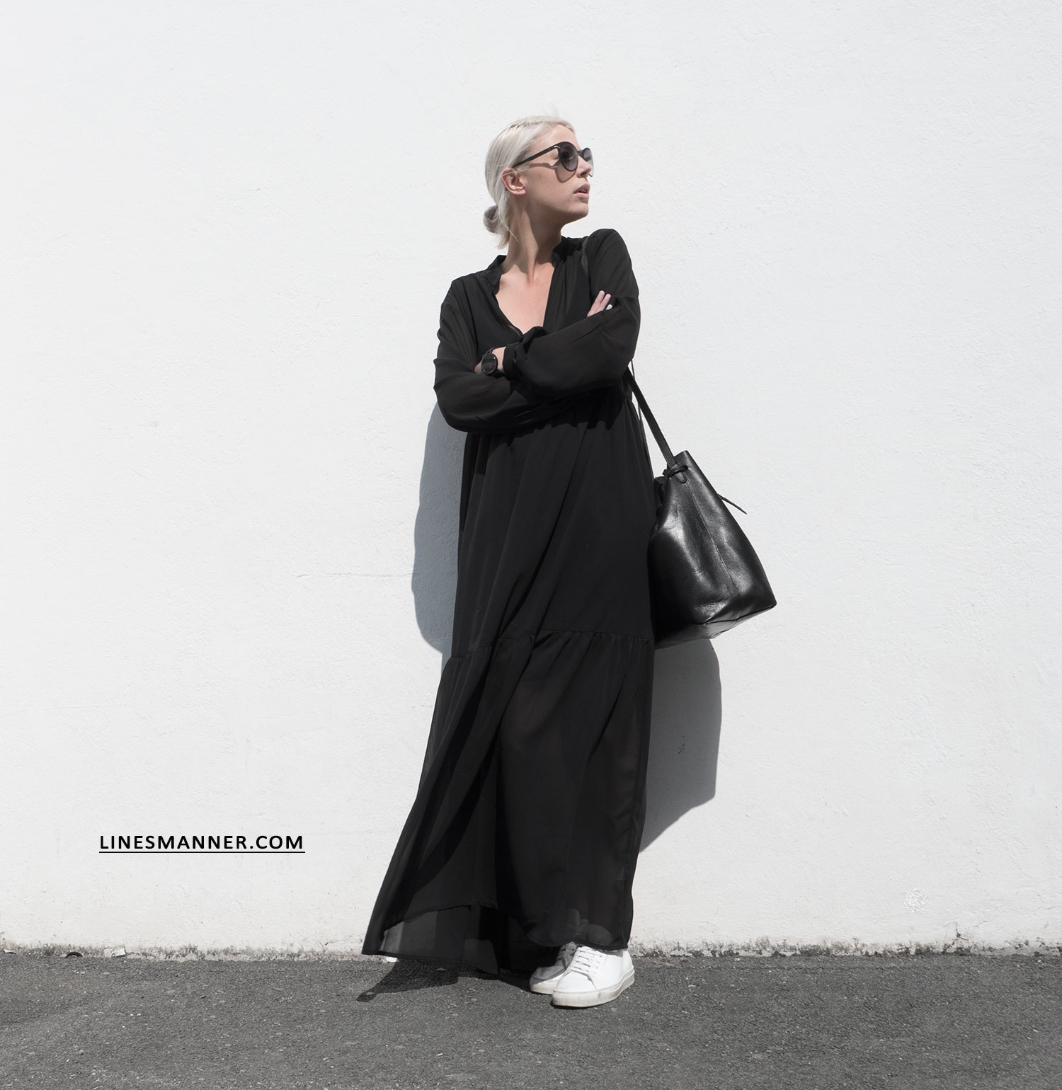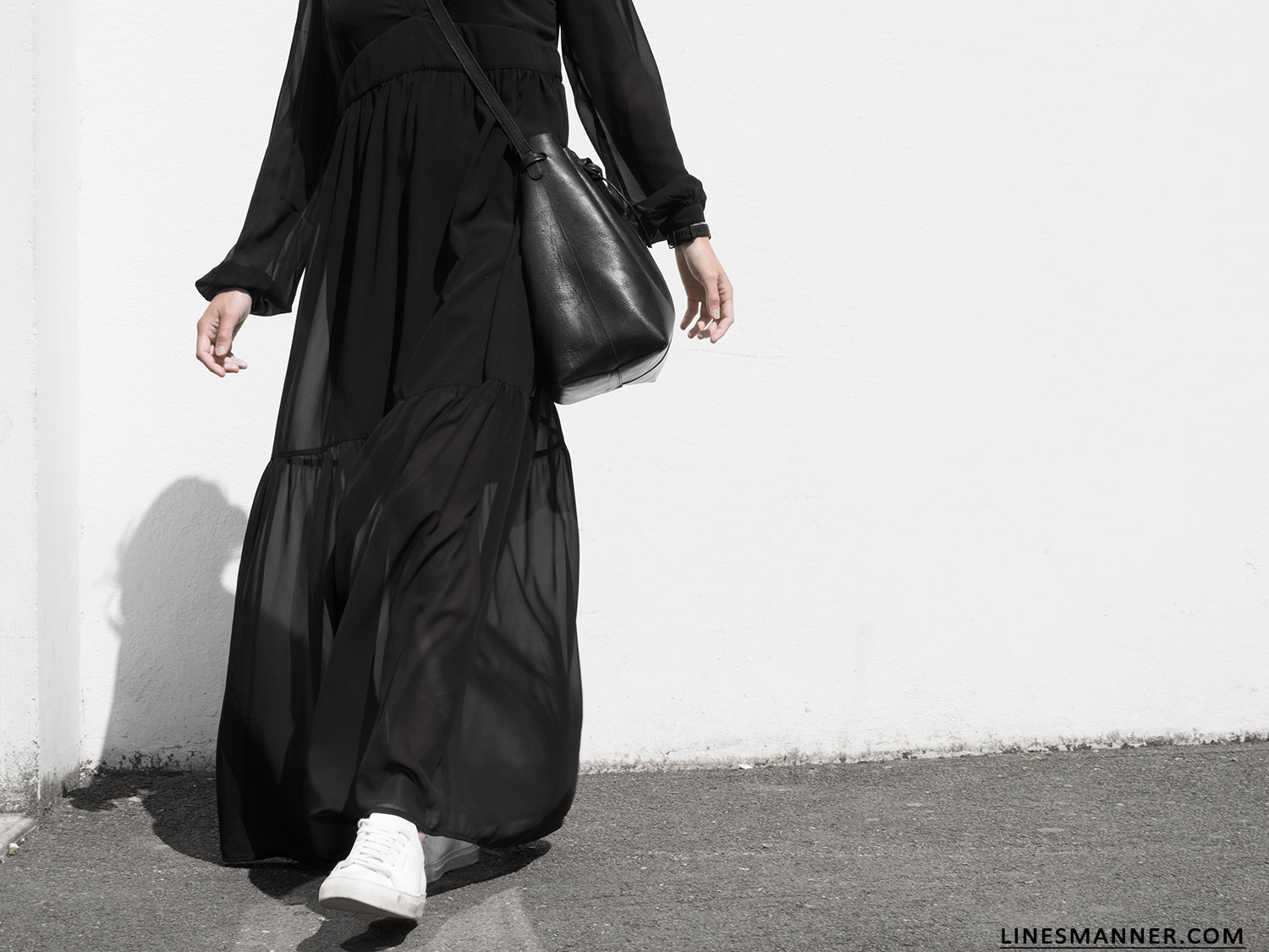 Na-kd Maxi Black Dress – Axel Arigato sneakers (old) – Moyi Moyi Bucket Bag – Kapten & Son Watch