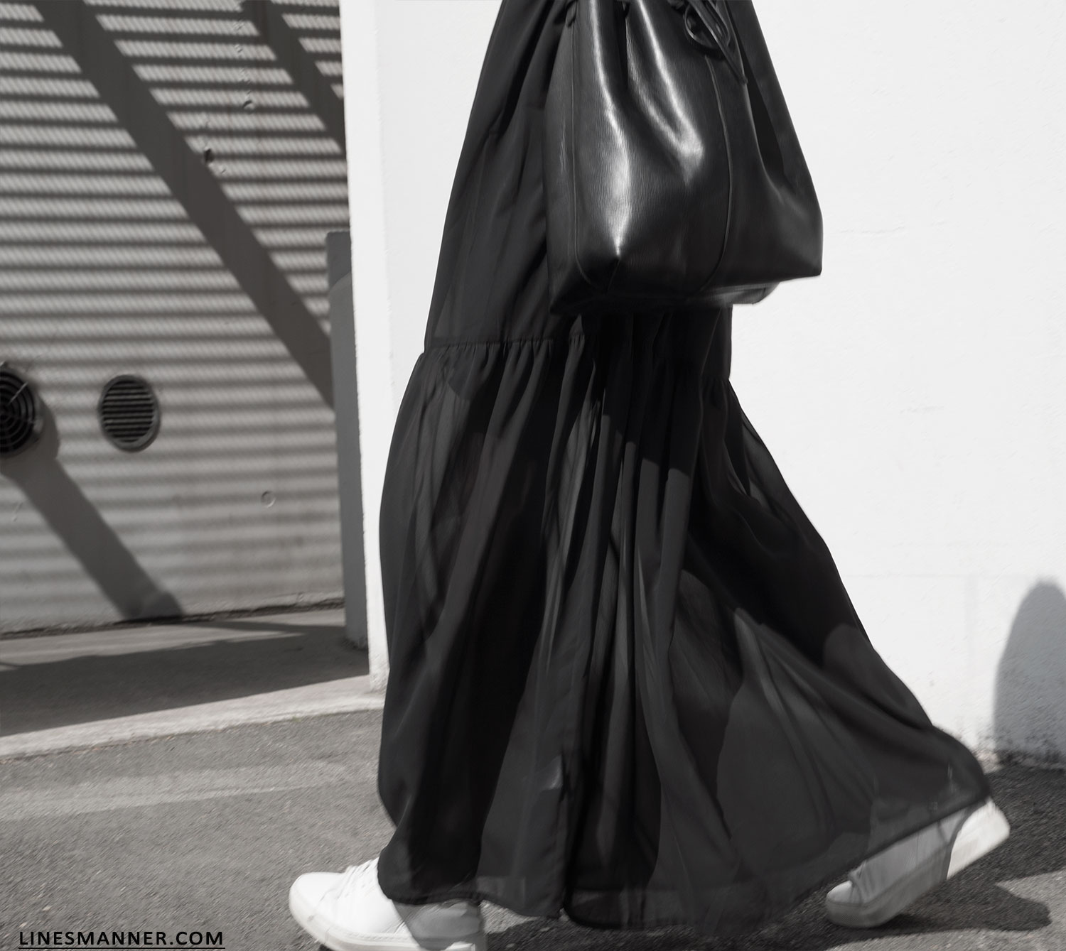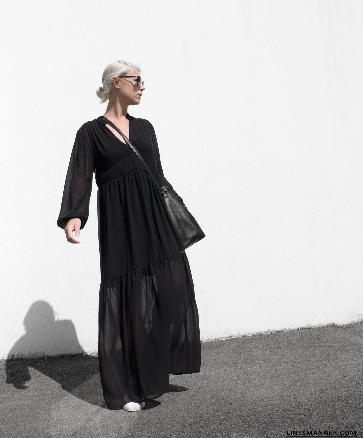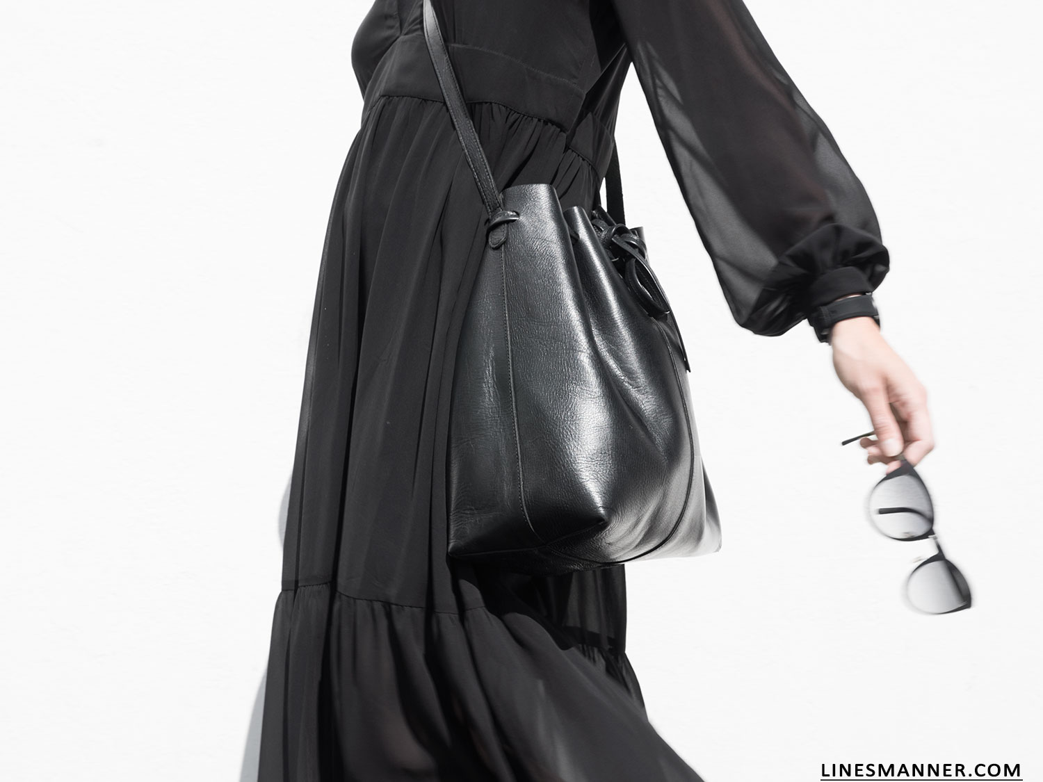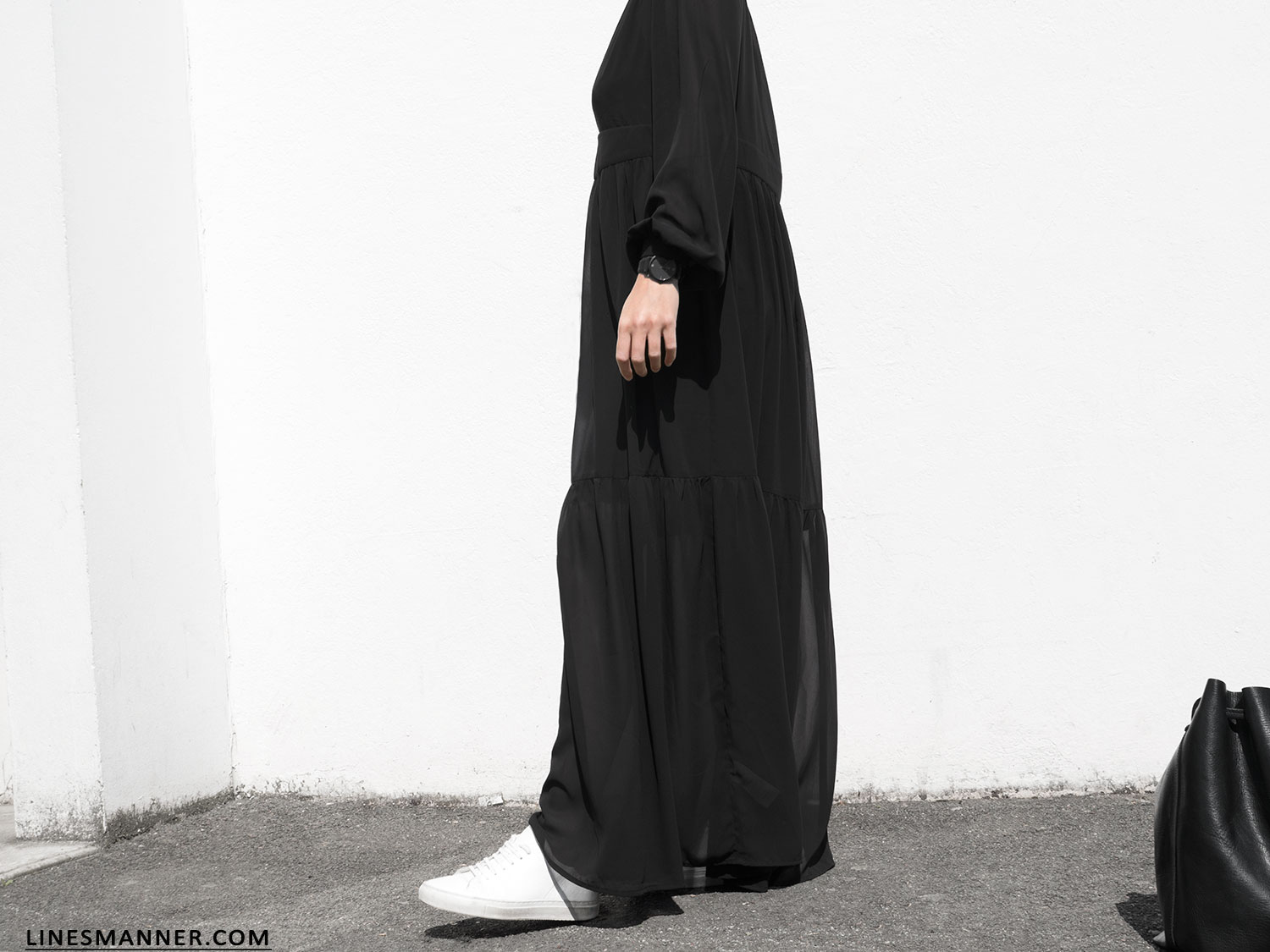 Na-kd Maxi Black Dress – Axel Arigato sneakers (old) – Moyi Moyi Bucket Bag – Kapten & Son Watch