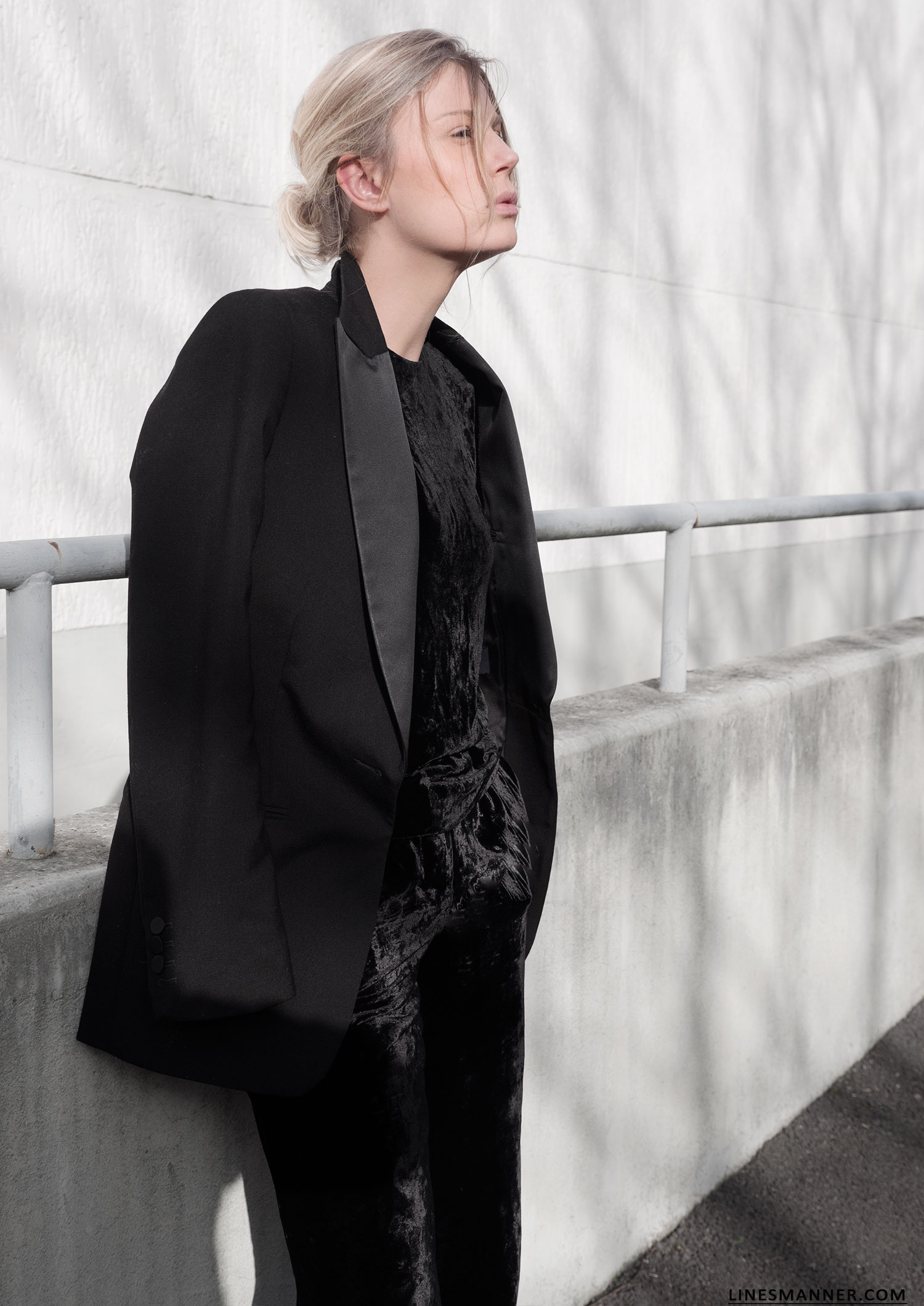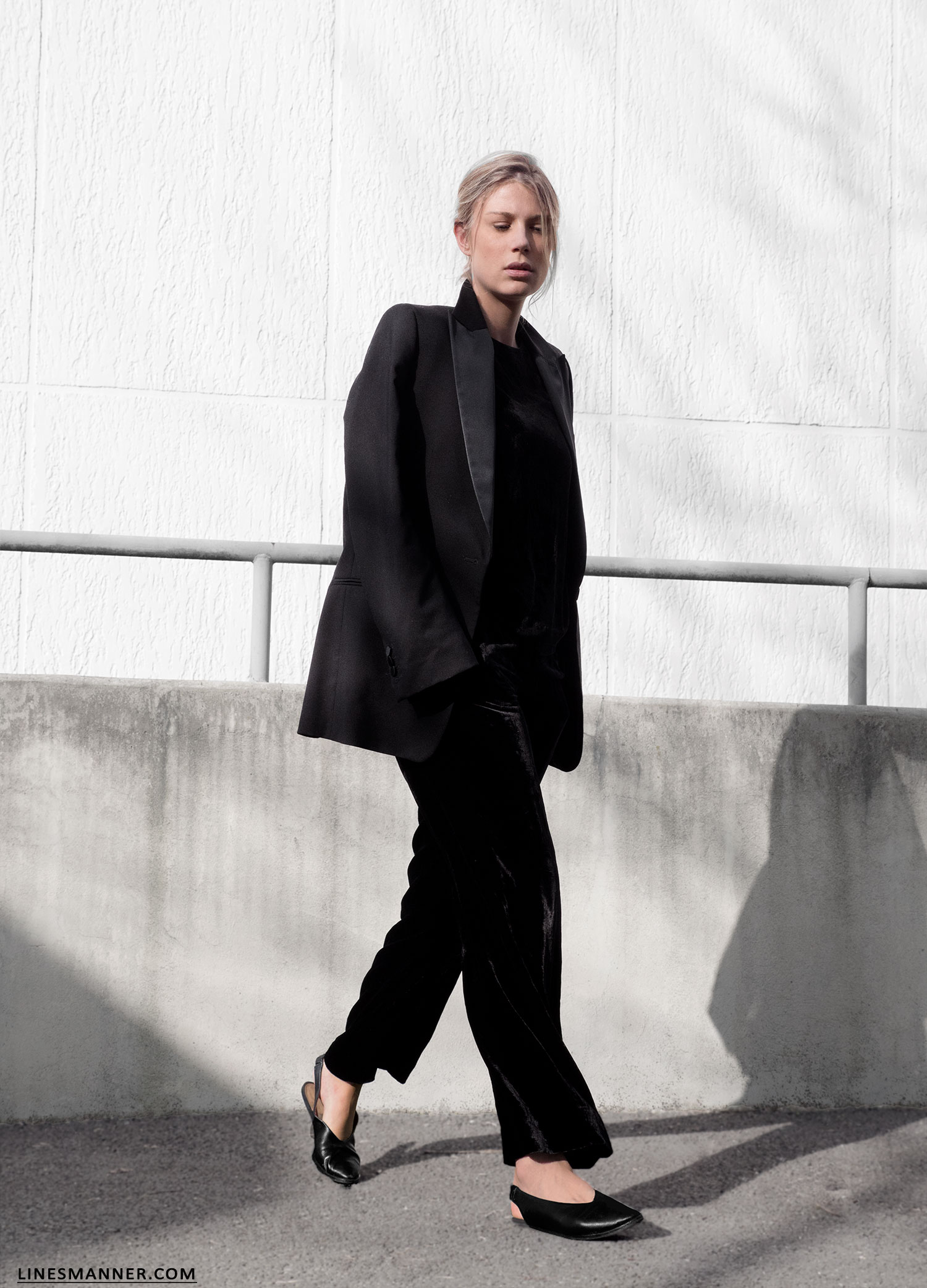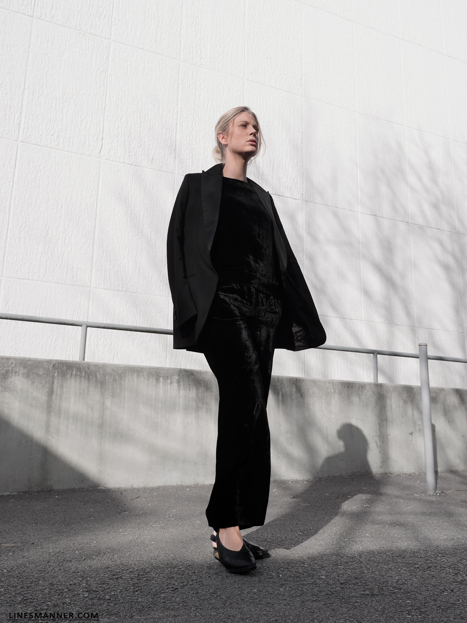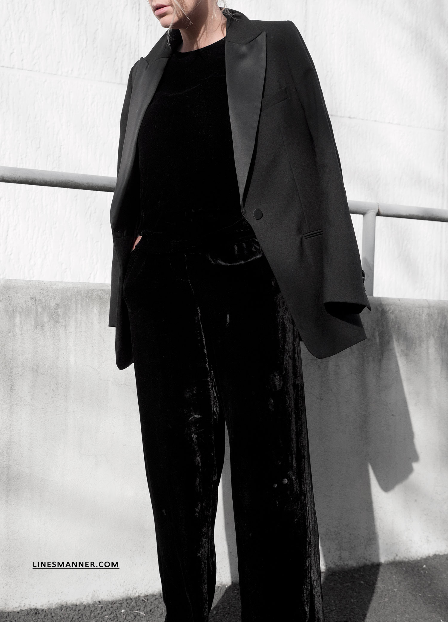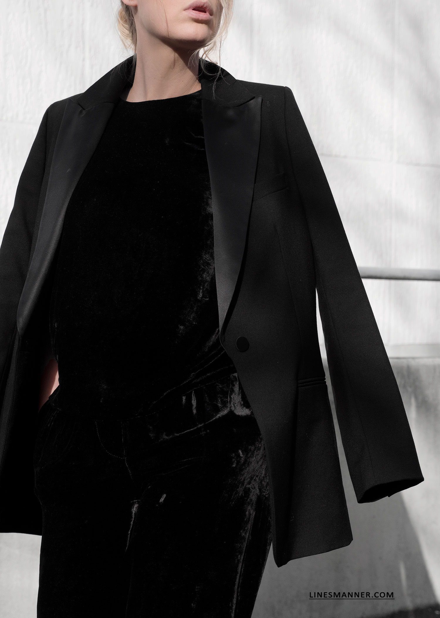 Luxe velvet uniform and structured blazer.