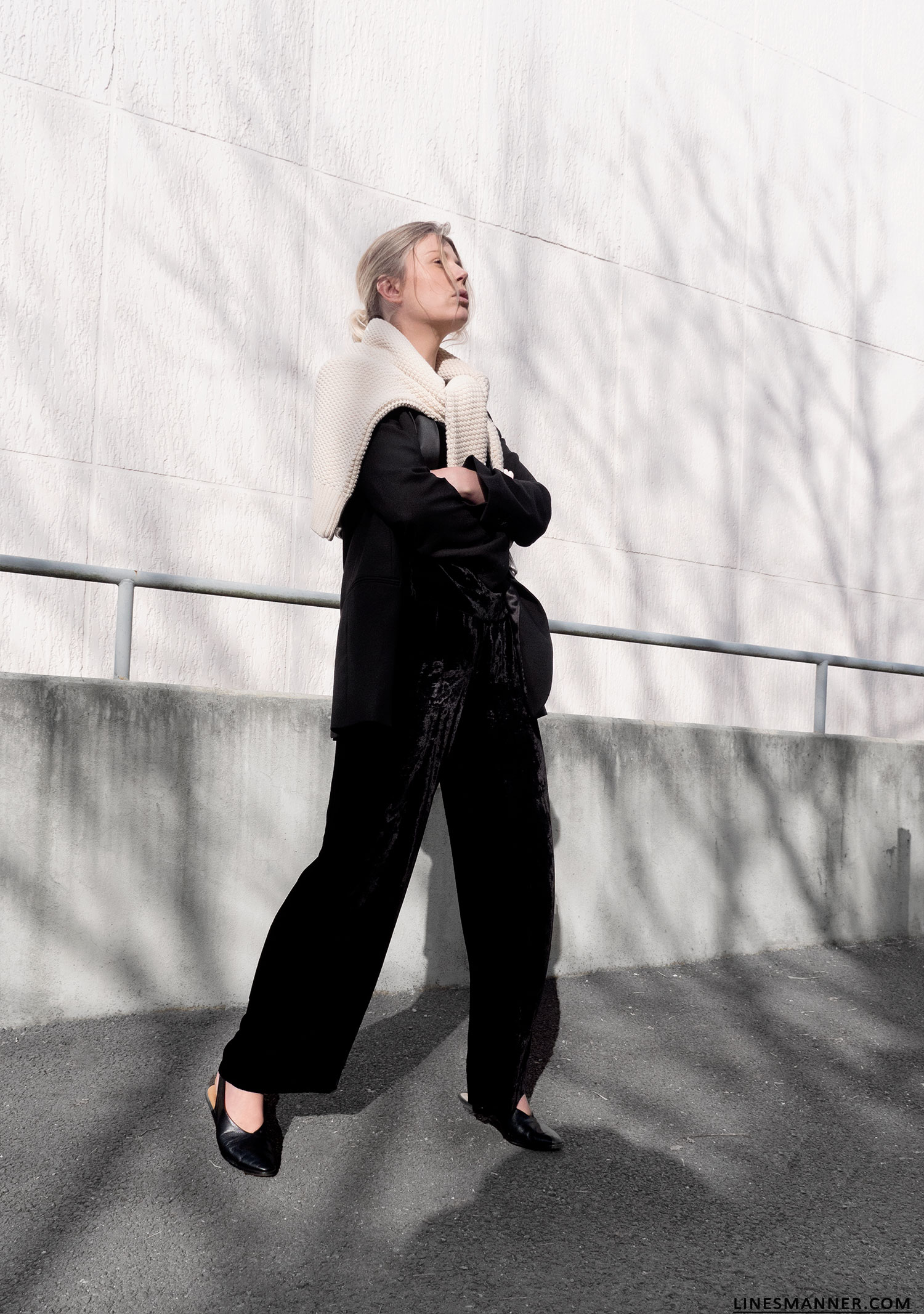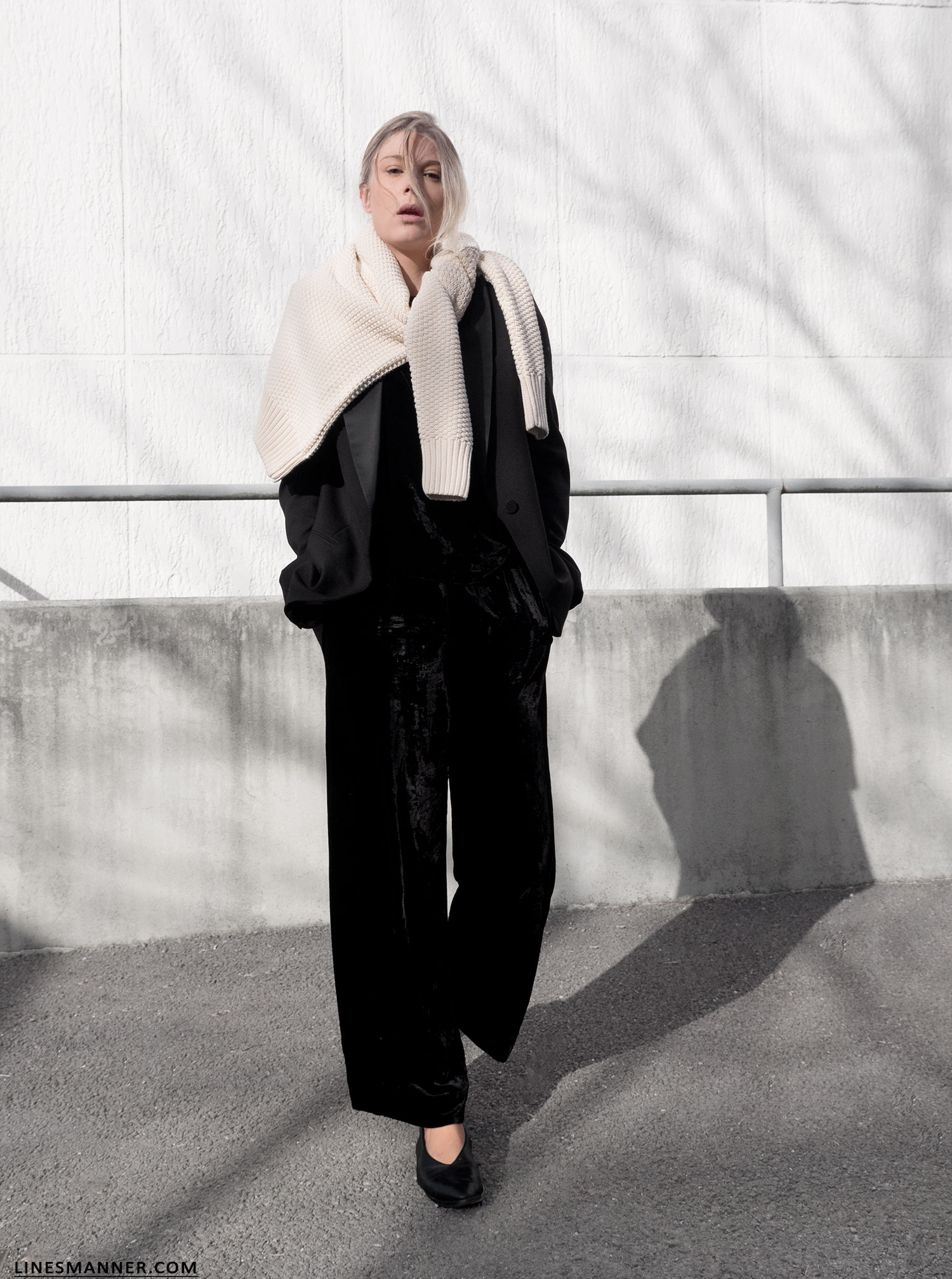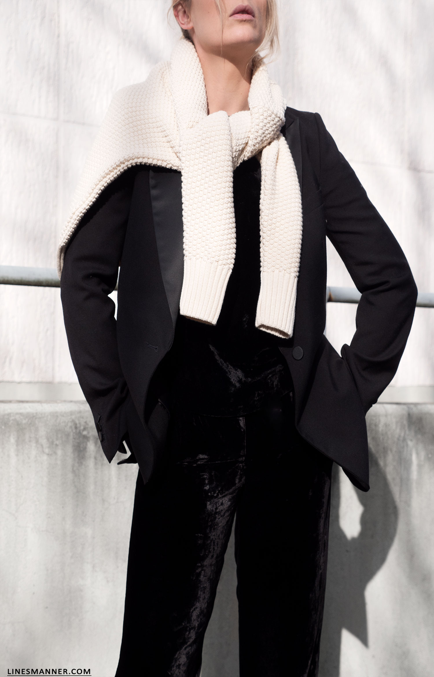Mila.Vert knit – Arket Blazer – COS velvet top – Eileen Fischer NYC pants